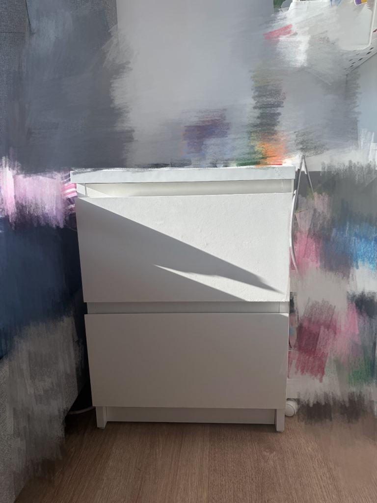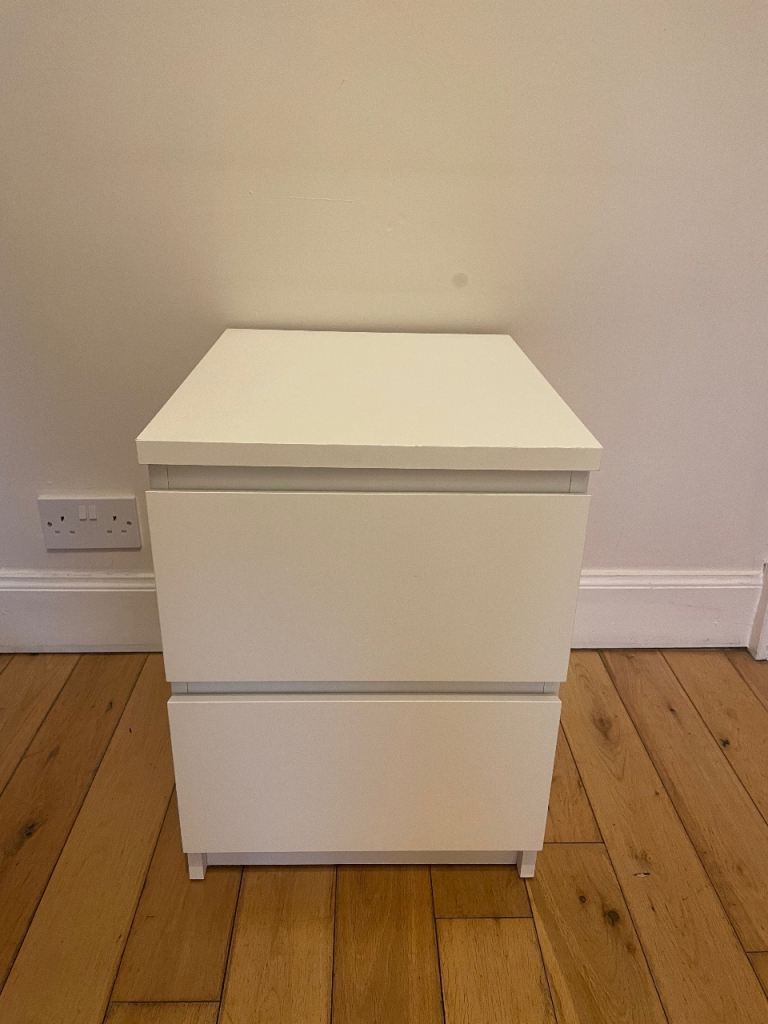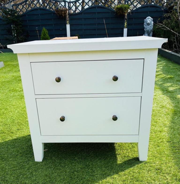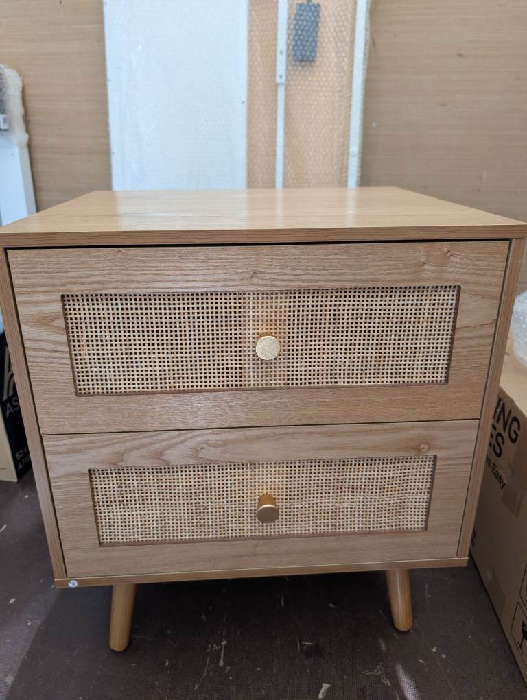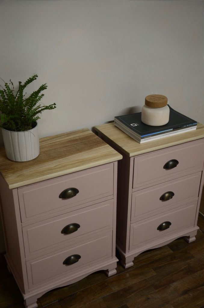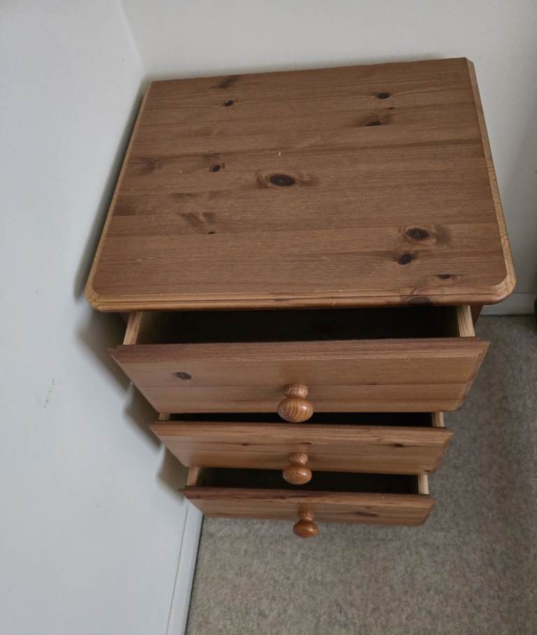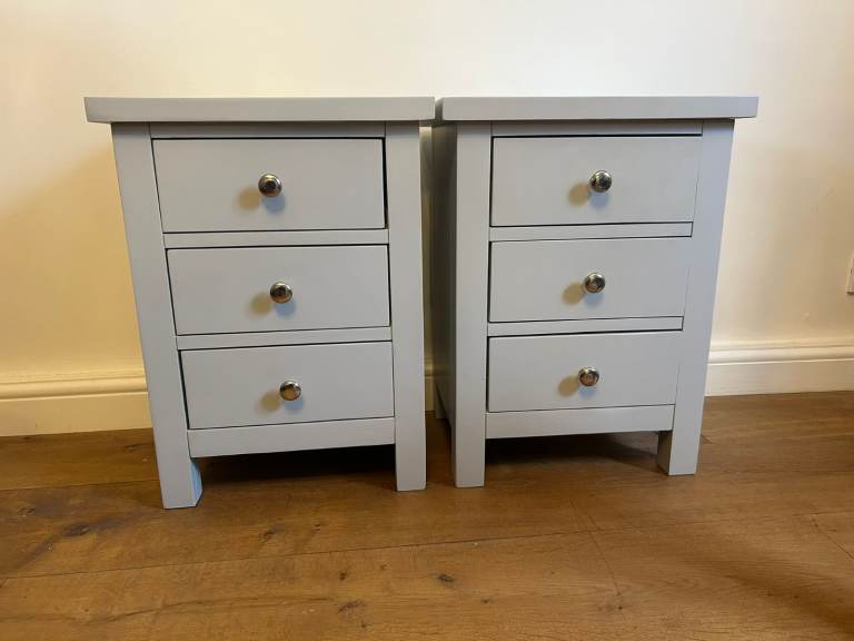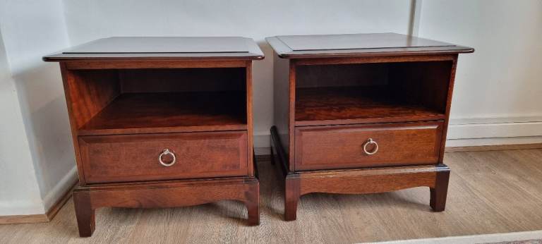 Pair bedside tables each with 3 drawers. W 45cms D 38cms H 58cms VGC