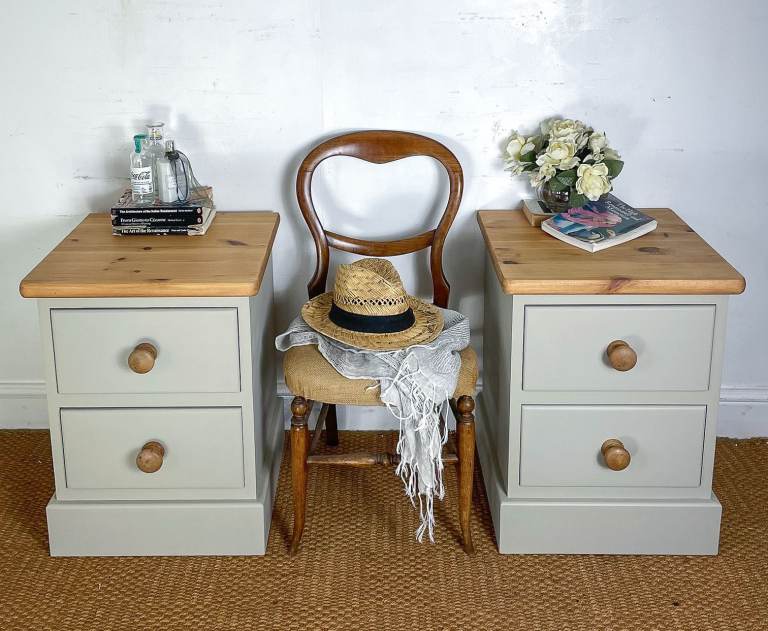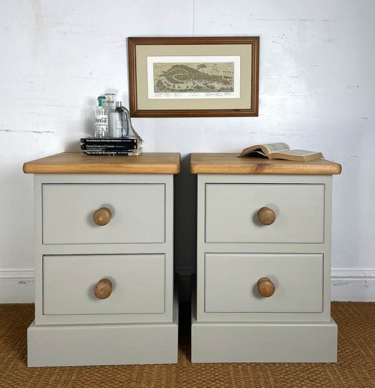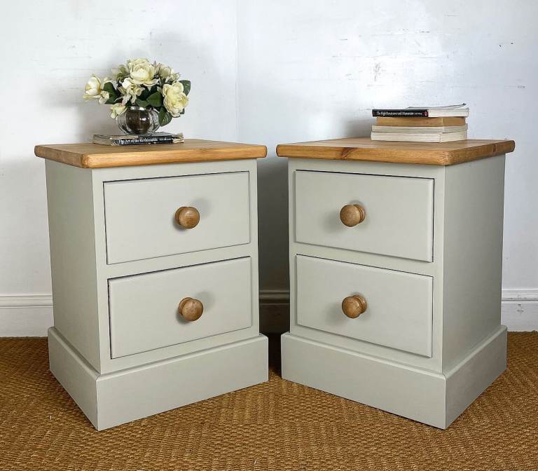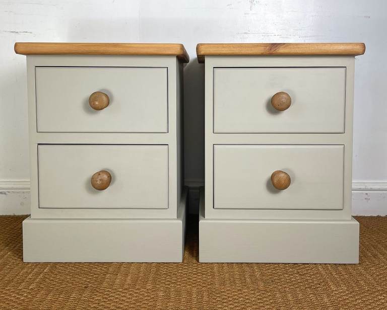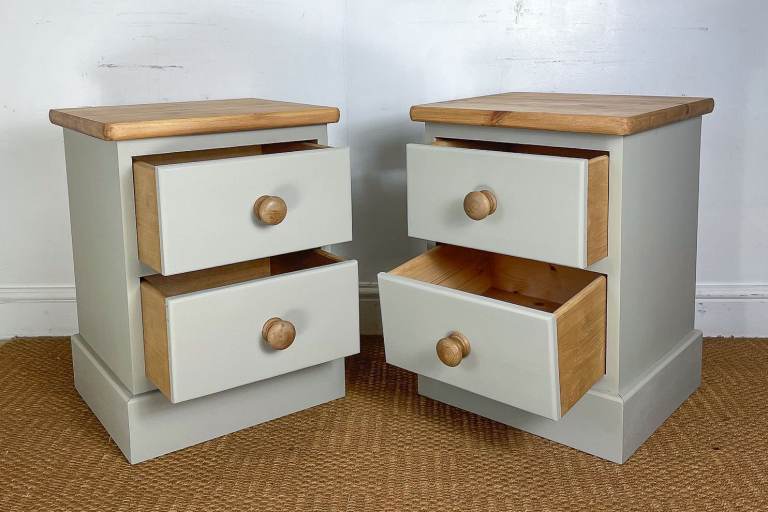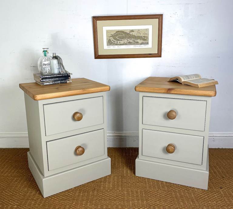 Pair Extra large chunky solid heavy pine bedside tables cabinets chest of drawers
