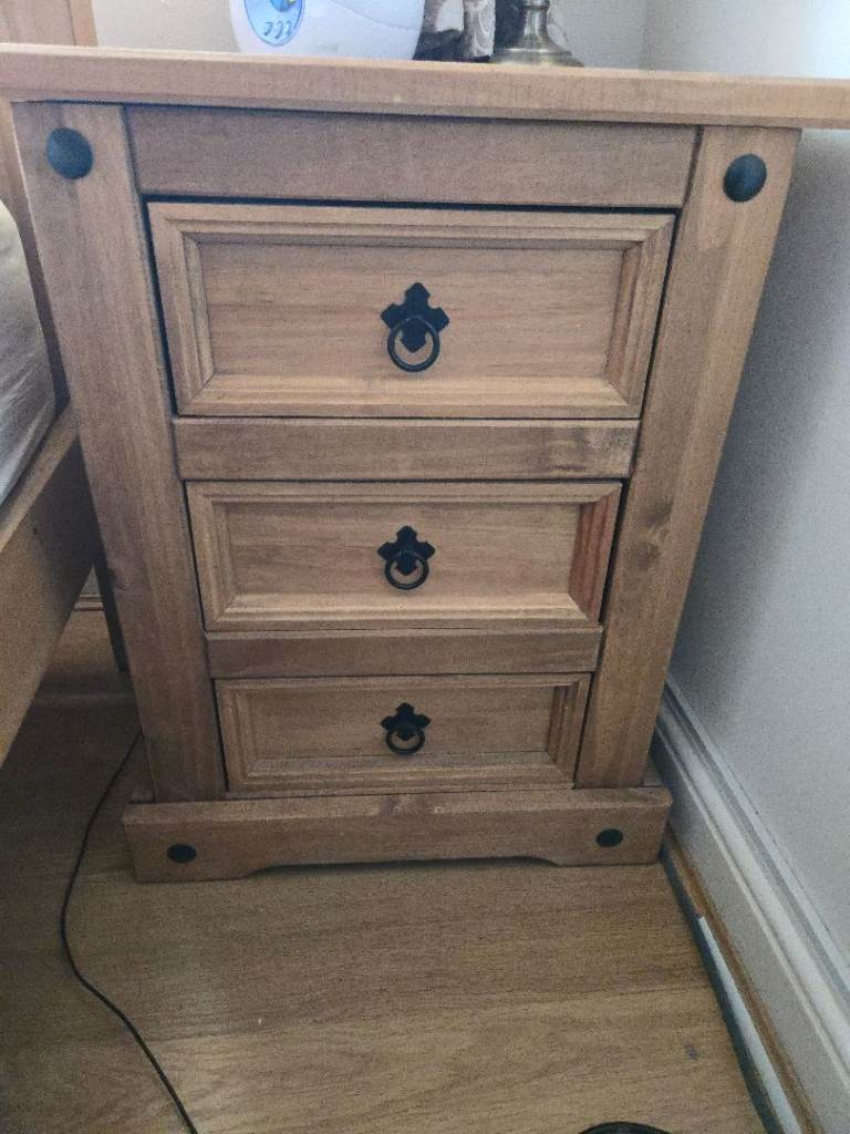 Pair of Solid Pine Wood Bedside Tables with three draws each