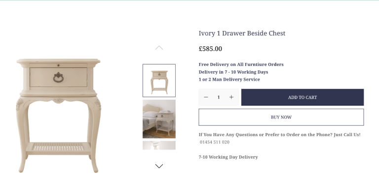 Beautiful French-inspired 1-drawer bedside tables from the premium Willis & Gambier Ivory range. These feature elegant hand-carved detailing, a soft off-white painted finish with subtle distressing, dovetailed drawers and a useful rattan lower shelf. Crafted from solid poplar and birch veneers with antique bronze hardware.