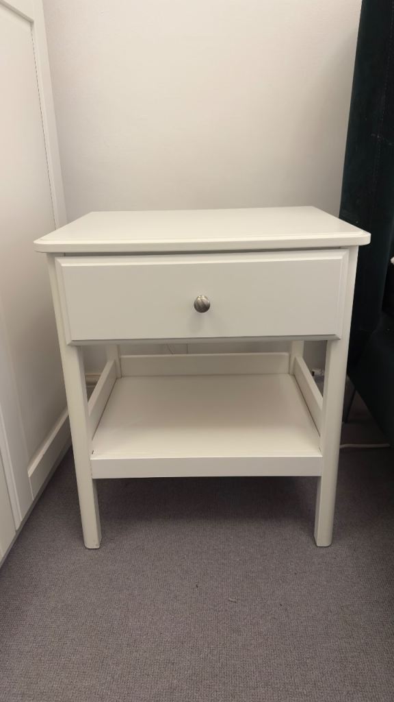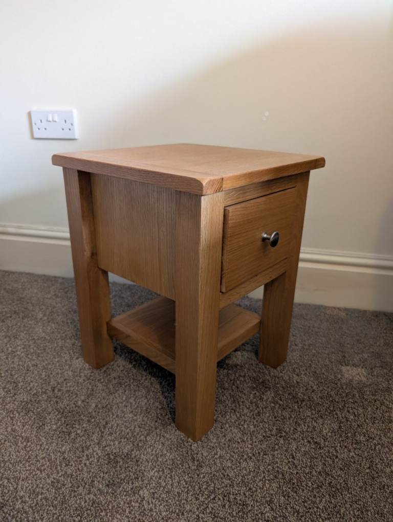 Small pine one drawer bedside table, good condition, size 46cm tall, 36cm wide, 36cm deep.