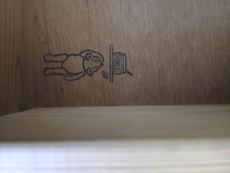 Excellent condition except for a bear printed inside one drawer -see photo