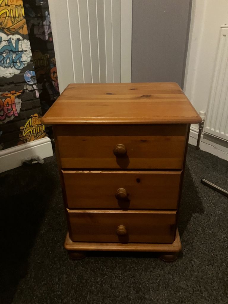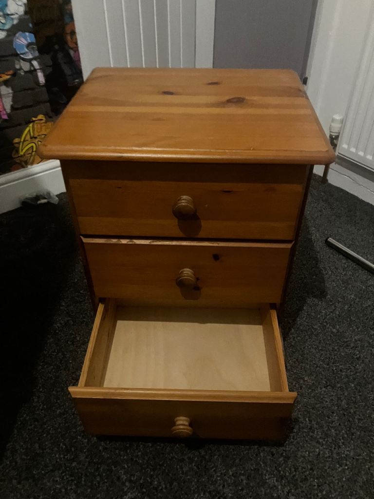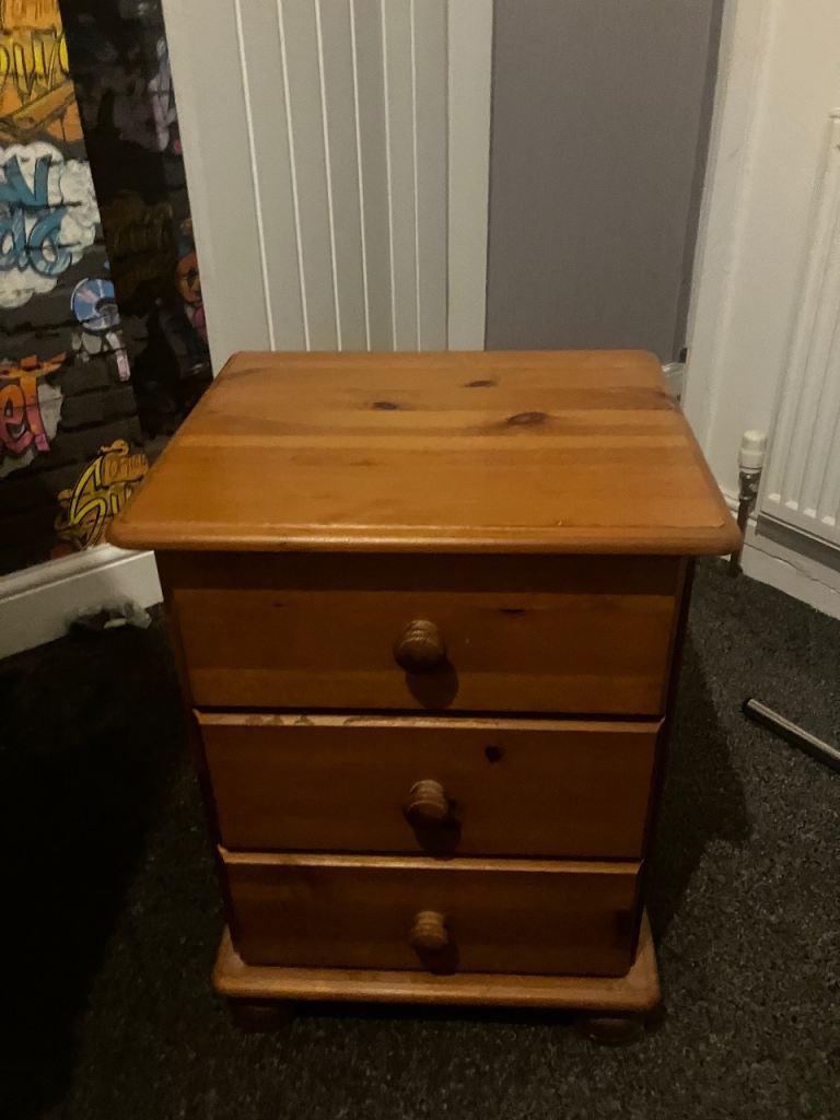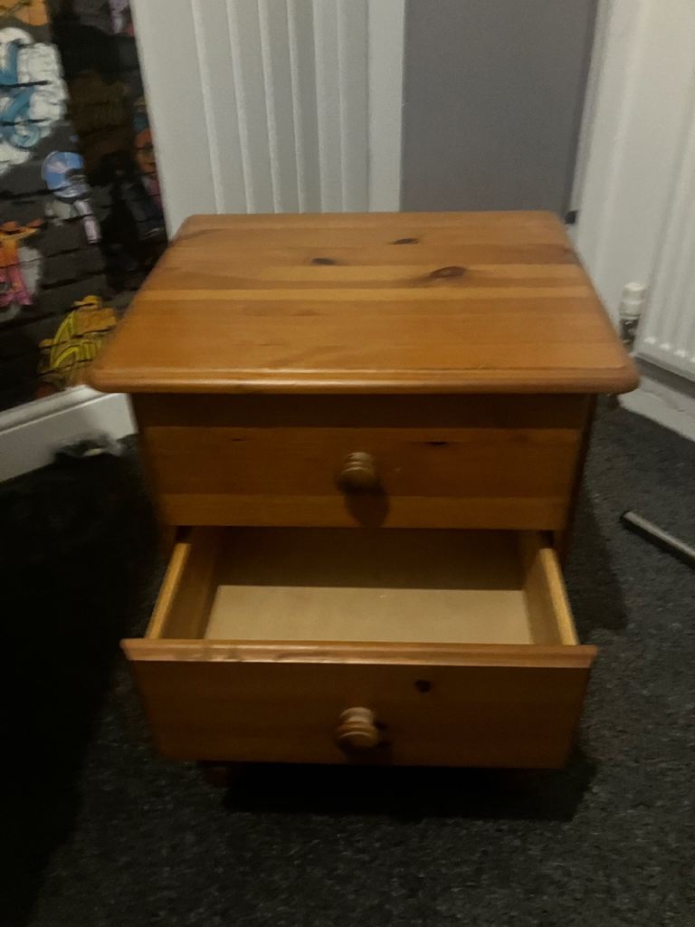 Hello there I am selling one sold pine bedside table and this is all in excellent condition and in excellent working order and in fully working order so bag a good bargain at £25 and can deliver for a small charge so take a good look at the photos and feel free to txt or ring me on my number with thanks