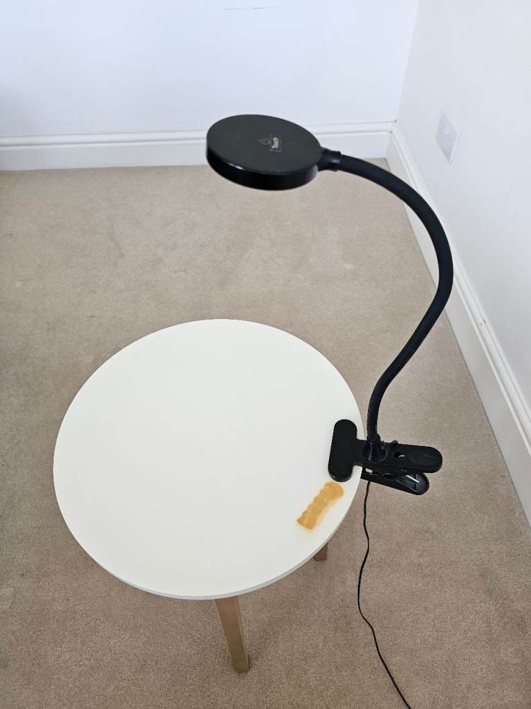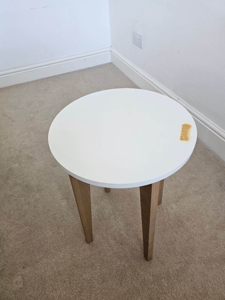 This is an M&S side table, unfortunately the grip of our lamp has made its mark so we are happy to throw in the habitat touch lamp