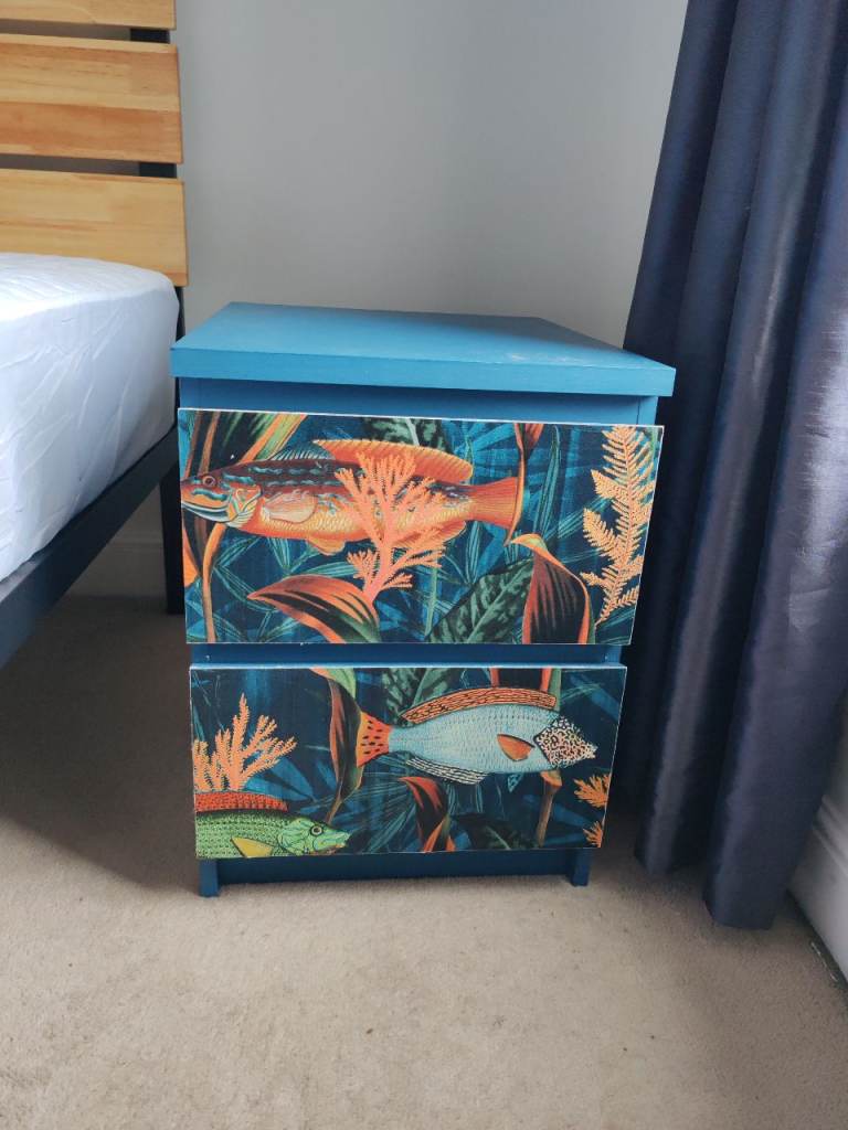 Beautiful Upcycled IKEA Malm Bedside chest with 2 drawers.