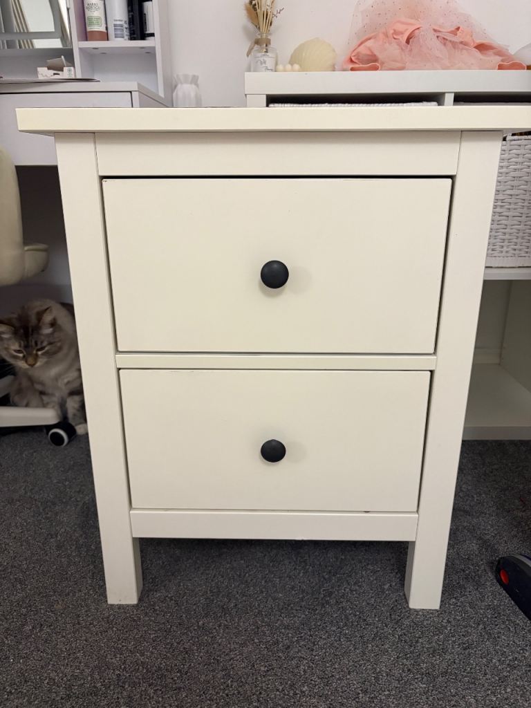 Posting for 8+ monthsWhite bedside table