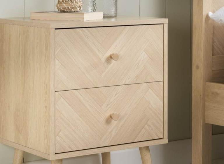 Posting for under a monthWooden bedside table with colourful mat