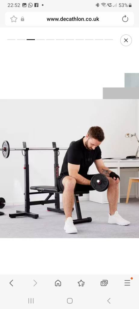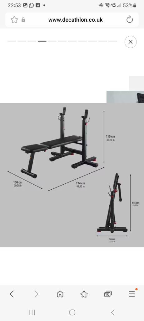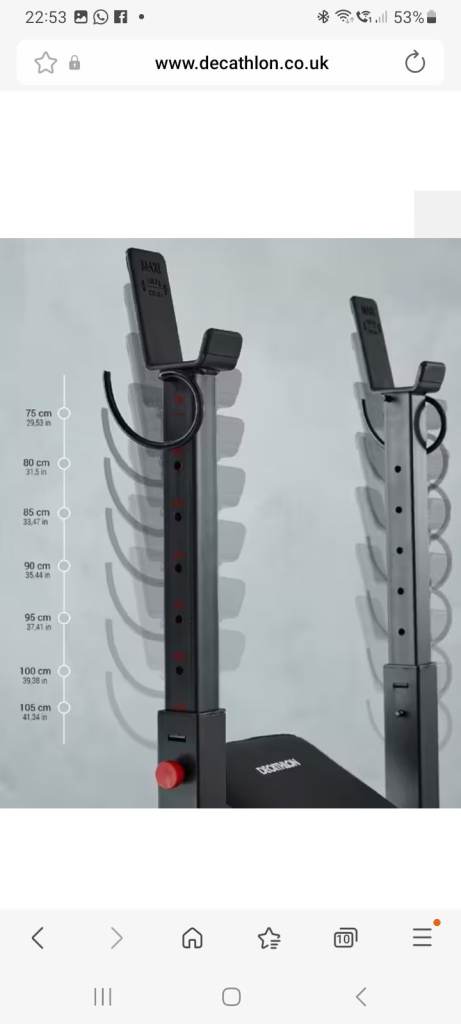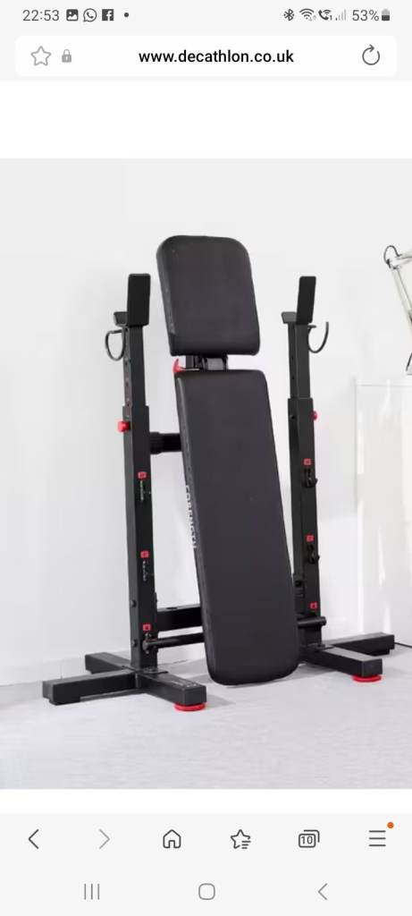 This tiltable bench with height-adjustable pegs provides a variety of options for safe weight training exercises with a barbell. It's stable, and it can be folded away to save space.