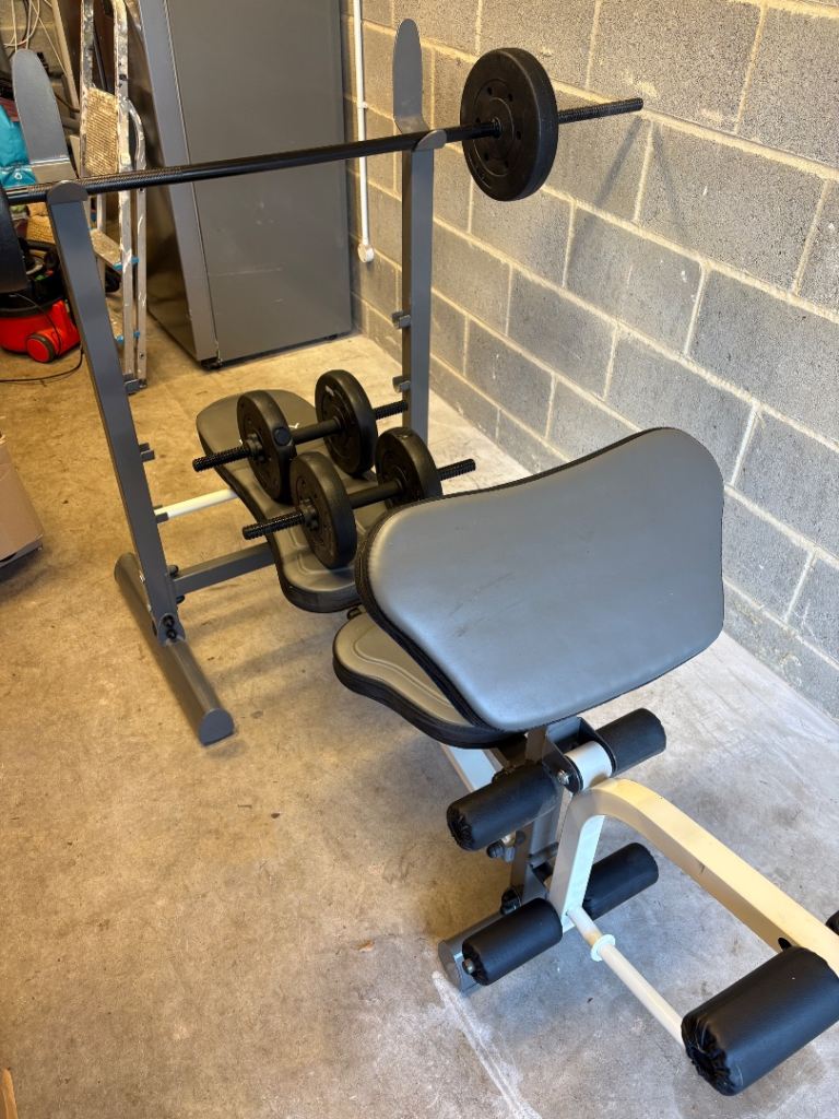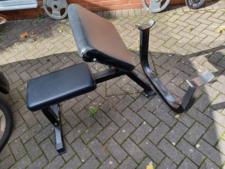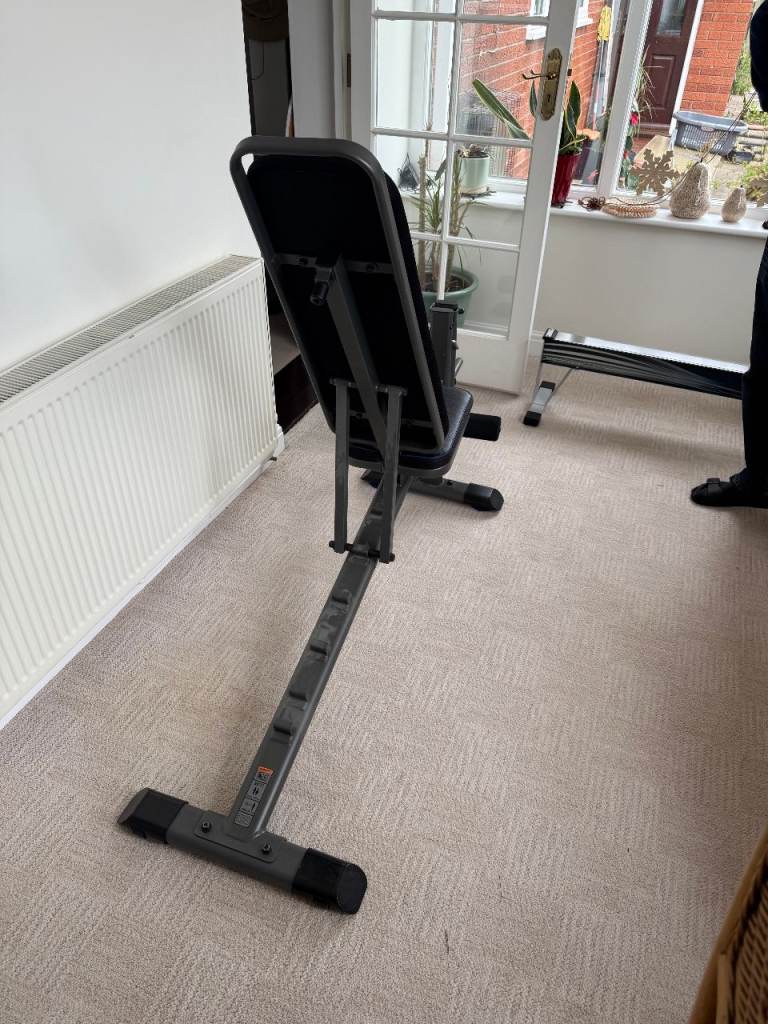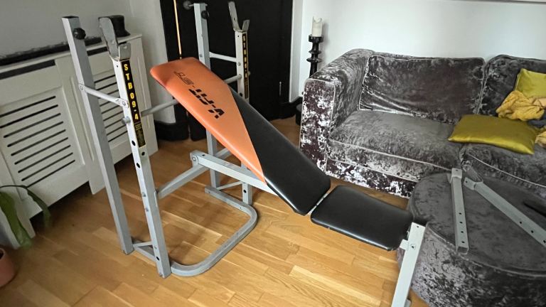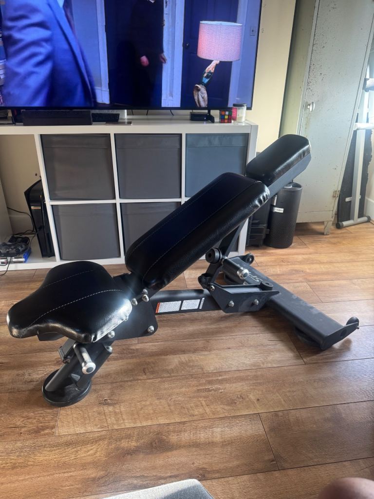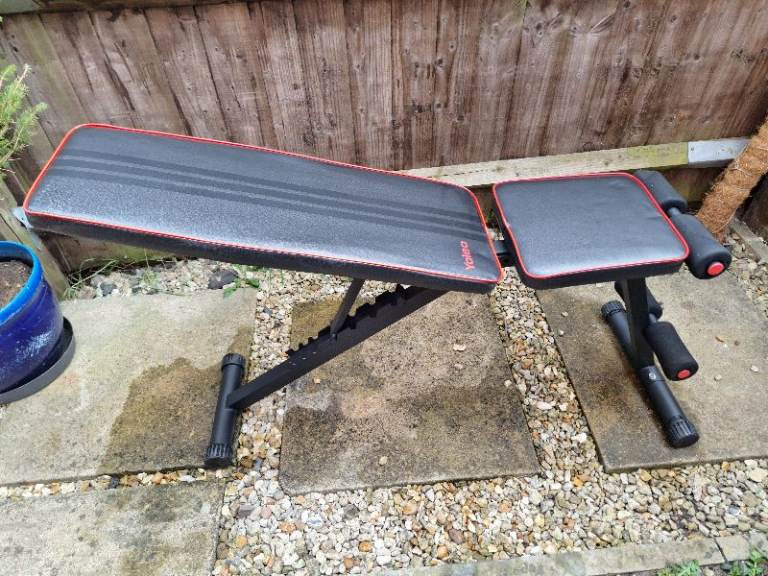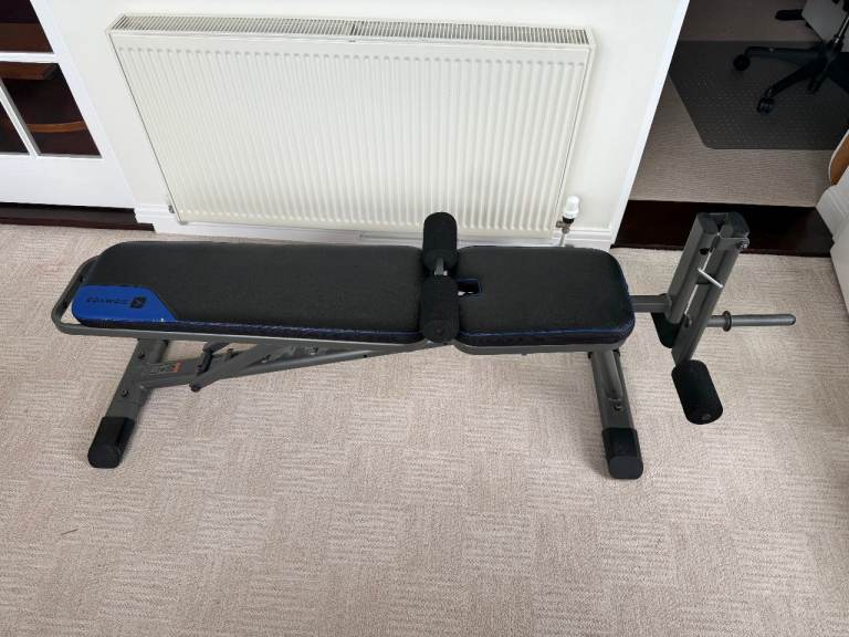 Domyos adjustable weight bench. Has a few marks but no rips or tears in the fabric. All joints work flawlessly and is very stable and sturdy under load.