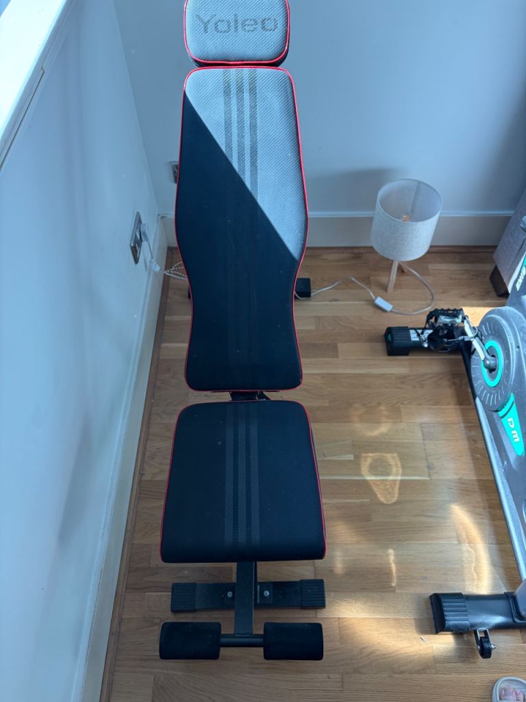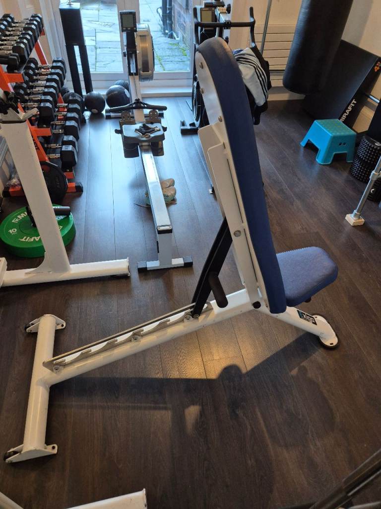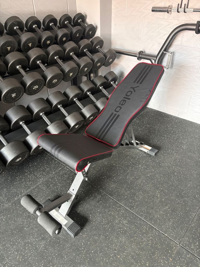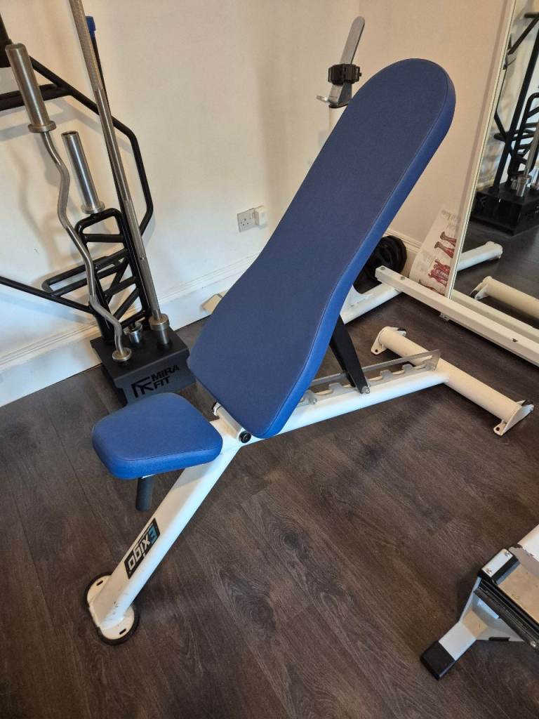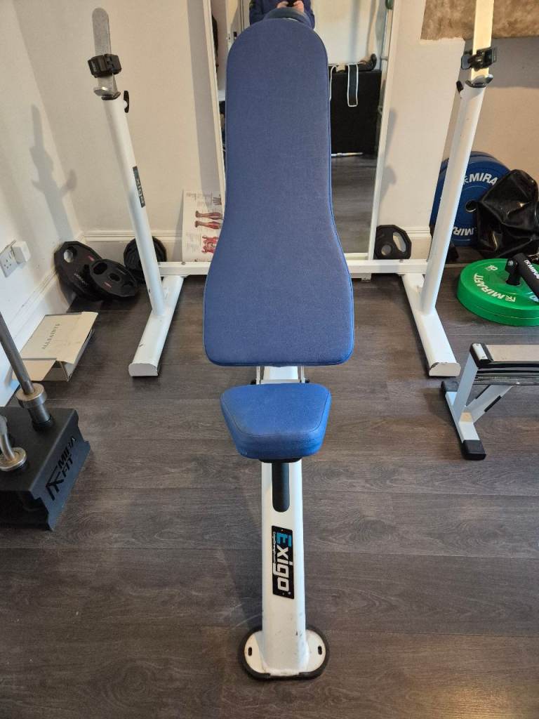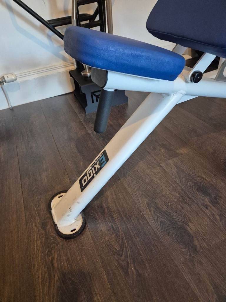 Used Exigo adjustable weights bench. Solid, commercial-grade build — far sturdier than typical