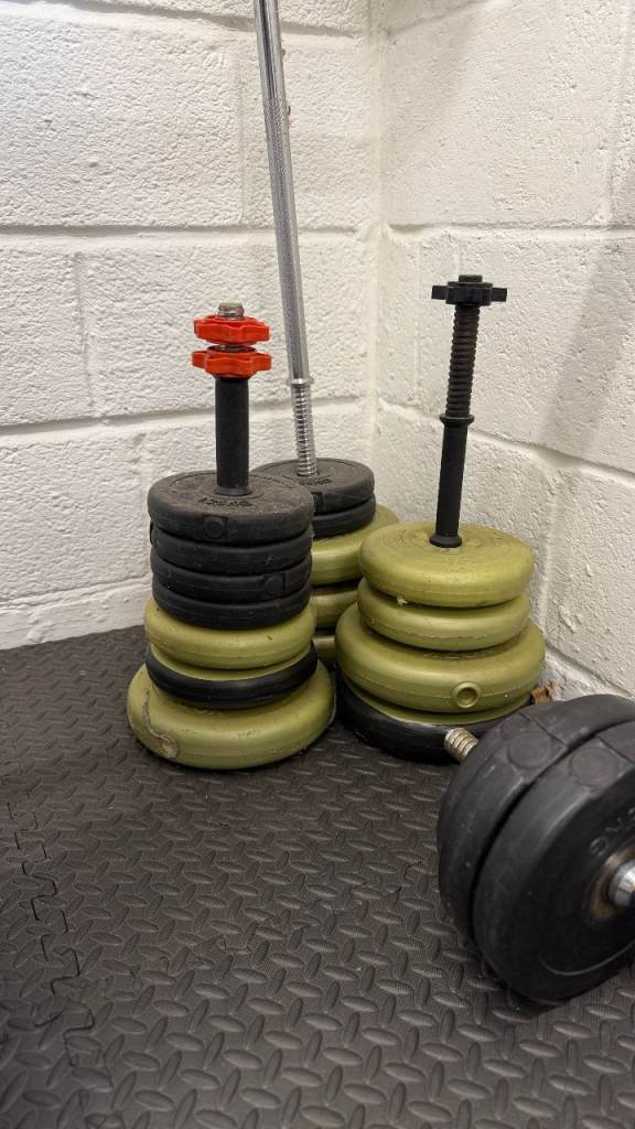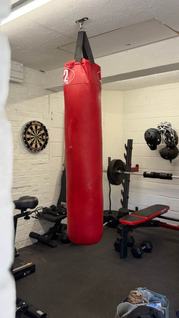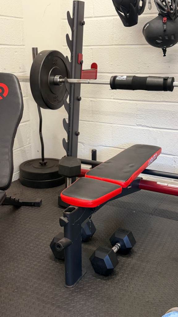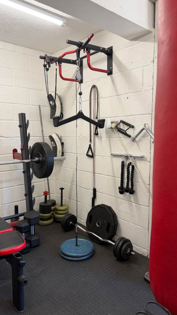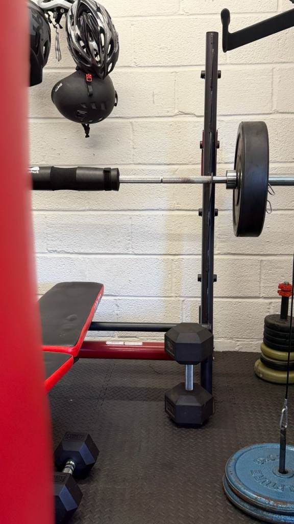 Full Indoor Gym Setup inc Olympic Barbell Weight Bench, Plates, Olympic Bar and Punchbag (As New)