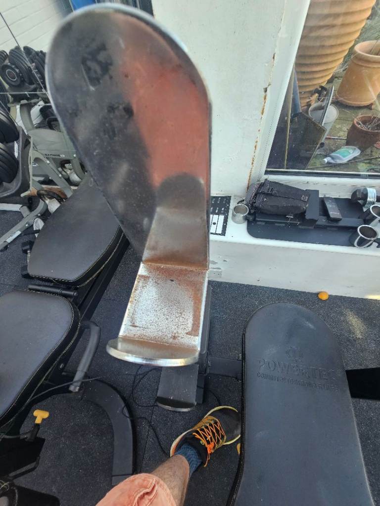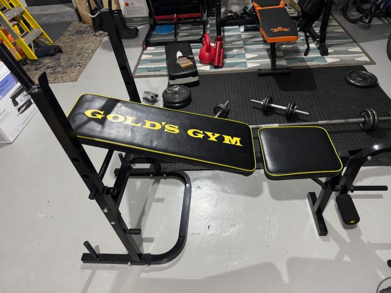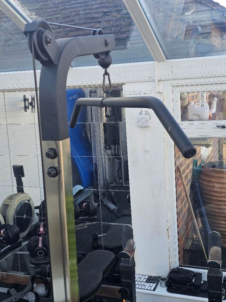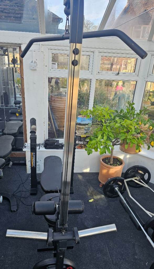 Selling this Bench, lat pull down attachment and lat pull-down bar. Please note there seems to be more resistance using the pull down attachment than I think is normal so may be a dent or something in the plastic cuff that needs sorting. Weight plates not included. The bench press width can be expanded using wider floor base (included).
