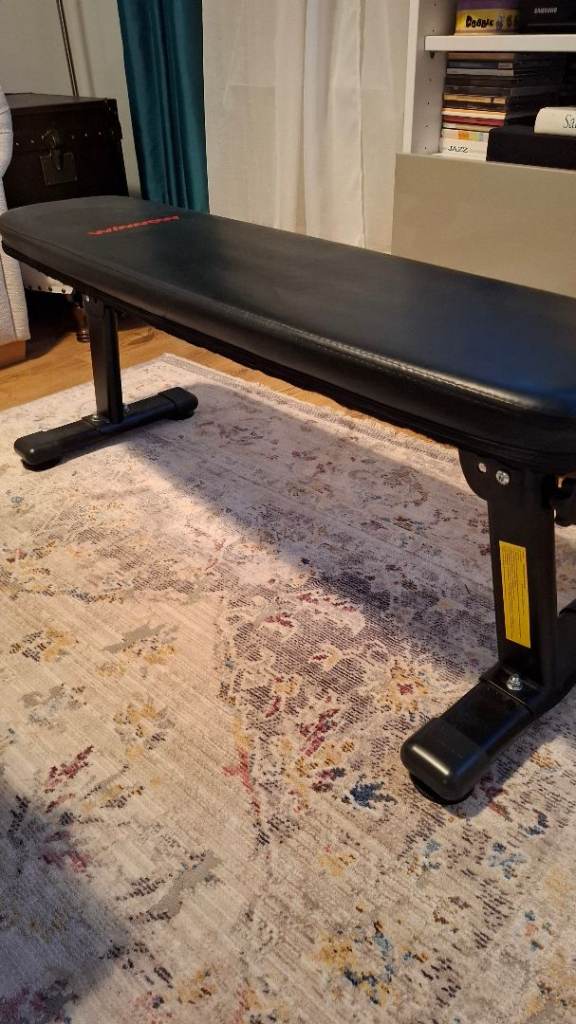 Weight bench for exercise. Hardly used. Great condition. Made of styrdy steel tubing. Foam pads allow you to exercise comfortable. Can be easily folded and hide if not used. From damp, smoke and pet free home.