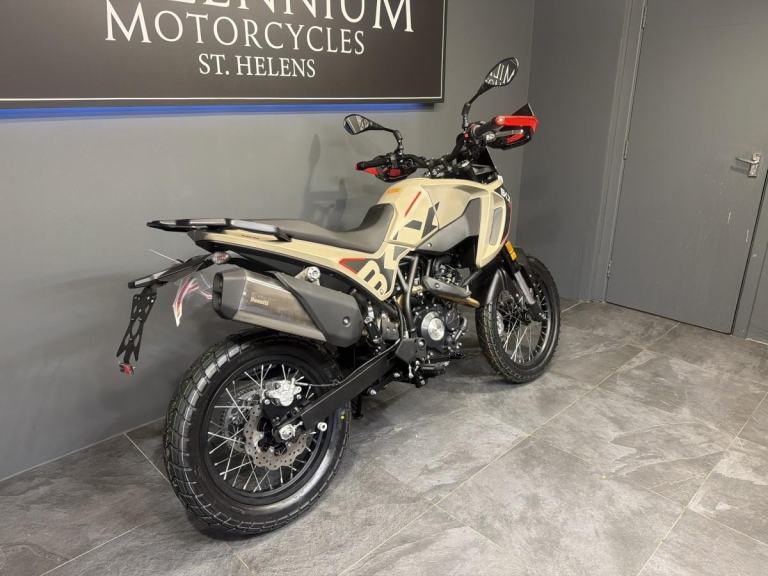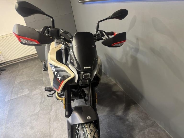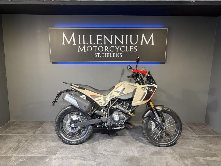 BENELLI BKX 125 Benellis new adventure bike, dedicated to the next generation of motorcyclists, arrives on the market, a motorcycle designed for those who want to explore alternative paths and explore new roads with complete freedom. A lightweight, easy-to-use all-rounder, designed to offer maximum handling and control in any context and on any surface, always ensuring maximum fun. The BKX 125 is the bike Benelli has designed for those approaching the world of adventure, making lightness and ease of use its winning features. Its all-round spirit blends perfectly with a chassis designed for riding pleasure and a unique, innovative design. The BKX 125 features a steel tubular trellis frame and a 41 mm front fork that is fully adjustable for preload, compression, and rebound damping. This is a premium feature in a very accessible segment, allowing even the youngest riders and beginners to experiment with chassis setup and discover the infinite set-up combinations. The monoshock, adjustable for preload and rebound damping, is connected to the swingarm via a linkage. To tackle any terrain, the BKX 125 features 180 mm of suspension travel and a 19”/17” spoked wheel combination, just like modern adventure bikes (90/90-19” at the front and 120/90-17” at the rear). Coming to dimensions, the BKX 125 has a seat height of 860 mm with a ground clearance of 233 mm, a wheelbase of 1,430 mm and a weight of 144 kg. Thanks to a slim but capacious 12-litre fuel tank and low fuel consumption, the range reaches the threshold of 500 km. Choose Millennium Motorcycles for your next bike. Buy with confidence from the North West’s leading Multi-franchise dealership. Your new bike will be inspected by one of our trained technicians. Part Exchange Welcome, Finance available and Nationwide delivery. WhatsApp on [Phone number removed]or call 01744 616161. Reserve or buy online at [Website URL removed] Come pay us a visit with our amazing clothing and accessories department and on site café.