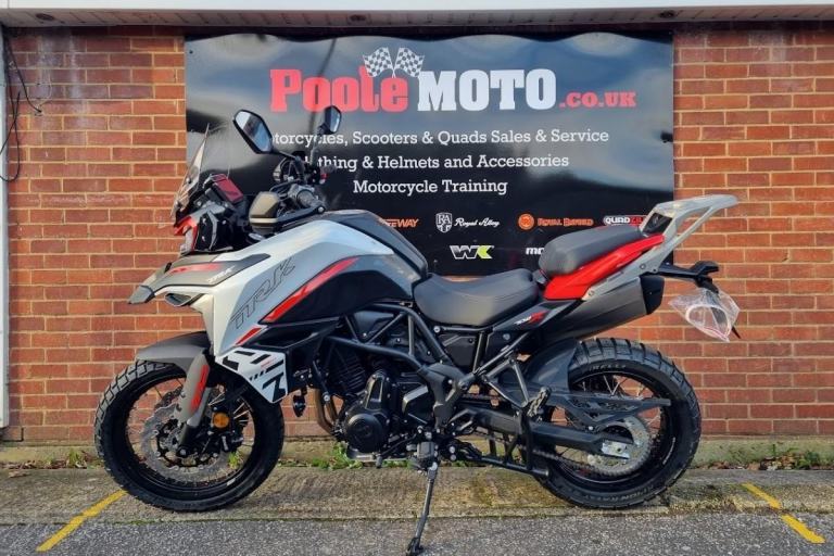 Call us 01202 621768 to buy your new Benelli motorcycle.Born to travel. The TRK 702 is a comfortable and tireless globetrotter, the new Benelli model designed to travel endless roads to discover unforgettable places, but also to enjoy the city in comfort, a source of countless emotions. The TRK 702 is in fact an all-round tourer, a two-wheeler that offers maximum comfort for rider and passenger alike and an excellent riding feeling, without ever losing sight of the fun. A motorbike dedicated to adventure, developed by Benelli's R&D and Style Centre in Pesaro, which expands and completes the TRK range, positioning itself in the mid-range. An easy, intuitive motorbike, ideal for long journeys, powered by a brand new 698 cc twin-cylinder Benelli engine, developed precisely as a result of the need to create an intermediate product range between the 500cc and 800cc engines, exploiting the experience gained in the development and industrialization of both engine types, optimizing technical solutions already adopted. Consequently, the engine delivers power of 70 hp (51,5 kW) at 8000 rpm and torque of 70 Nm at 6000 rpm, guaranteeing a fast and responsive engine. It features double overhead camshaft timing with 4 valves per cylinder, with chain drive and crankshaft with crank pins offset by 180°. Electronic fuel injection with 41 mm double throttle body. The transmission unit, on the other hand, features a clutch-side removable 6-speed gearbox, assisted by a wet slipper clutch with torque converter, which significantly reduces the force to be applied to the clutch lever while maintaining smooth and precise gear engagement. Featuring a traditional trellis frame with a steel plate, typical of models manufactured at the House of the Leoncino, derived specifically from the 500cc model, able to guarantee handling and stability in all conditions and ideal especially for long journeys. The suspensions consist of an upside-down fork with 50 mm legs and 140 mm travel at the front, and a swinging arm with central monoshock featuring adjustable spring preload and rebound damping, with a travel of 45 mm (154mm at the wheel). Comfort and functionality are the hallmarks of the TRK 702, which features a large headlight fairing as standard, providing optimum protection for both rider and passenger and a backlit handlebar control block, to provide maximum visibility even at night. As optional are heated handgrips and rider seat and the bike already offers the predisposition for installation. high-performance braking system is ensured by the double 320 mm diameter semi-floating disc on the front and four-piston caliper, and a 260 mm diameter disc on the back with a single-piston caliper. The 17” aluminum alloy rims mount Pirelli Angel GT 120/70 and 160/60 tyres. As it is designed for travel, the TRK 702 features a tank with a capacity of no less than 20 liters and offers a comfortable pair of passenger handles, which also serve as a stylistic design feature to complete the look of the bike. This two-wheeler also offers a full LED headlight unit and a high-resolution 5'' TFT colour display, which has a Bluetooth connection to link to your phone and display incoming calls and notification. The handlebar controls allow also answering or ending a call. Furthermore, by downloading an application to your mobile phone and connecting via wifi, through a phone-mirroring solution it will be possible to transform the dashboard of your bike into a navigator. design of the new TRK 702, created by the Benelli Style Centre in Pesaro, relies on original distinctive lines, maintaining the family feeling typical of the TRK family but evolving to create a more aggressive and modern style, giving the bike an undisputed personality. As with its adventure-seeking “sister” bike, with which it shares proportions and volumes, the design of the bike stems from the need to highlight stylistic design features typical of the new TRK range. Starting with the aggressive and extremely recognizable fron