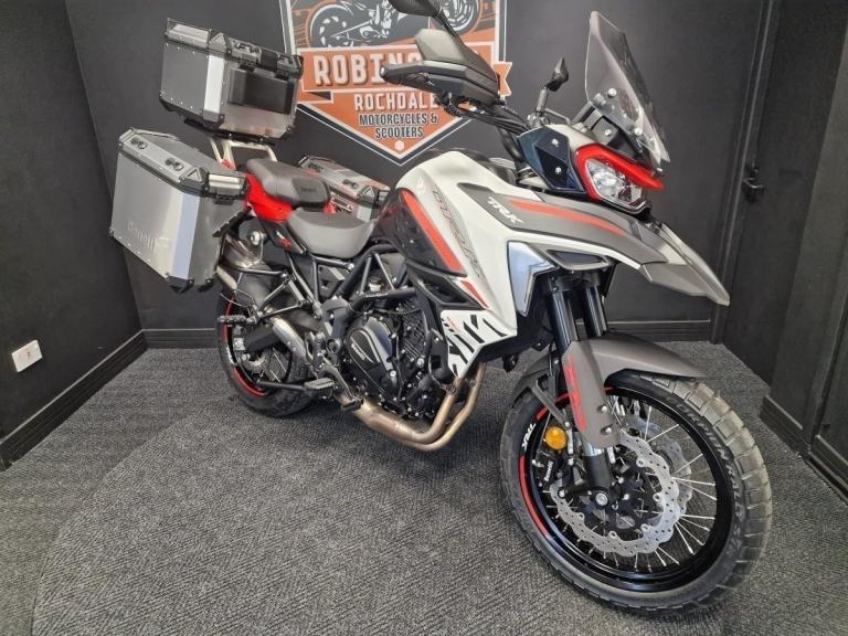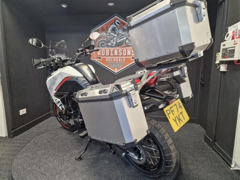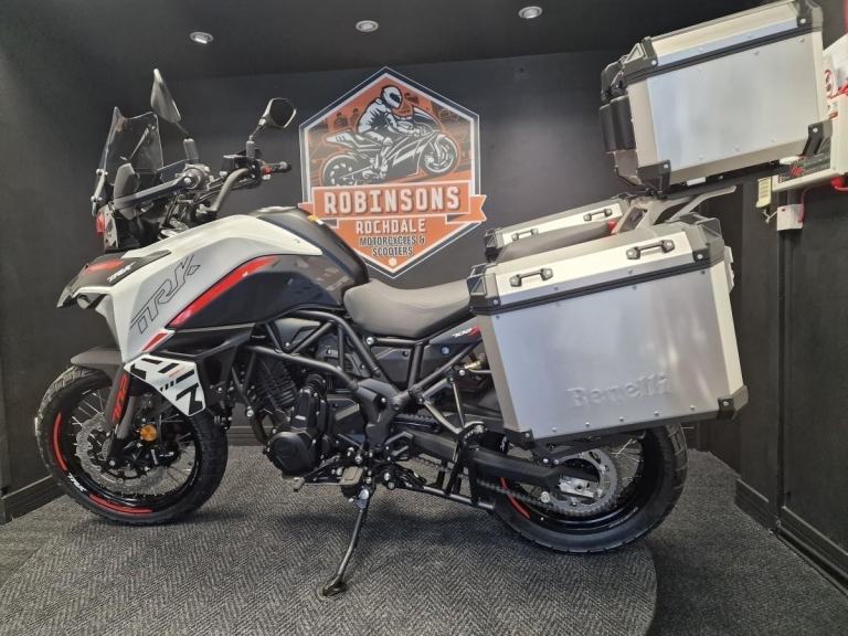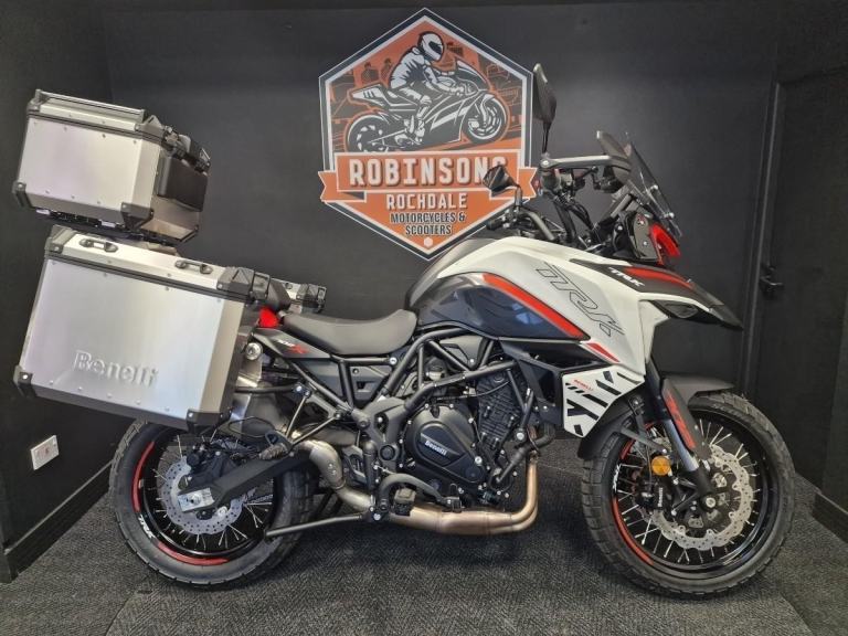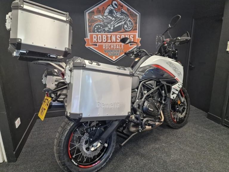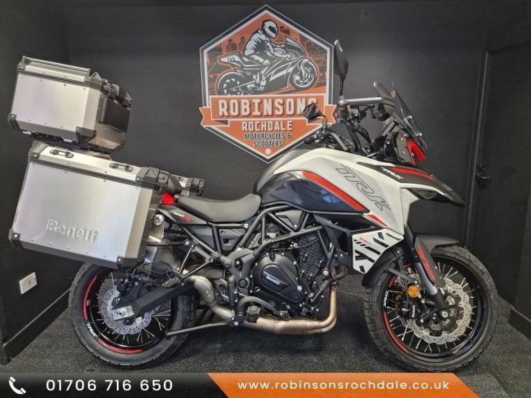 TRK 702X Pre registered 74 plateFree three part luggage.. Choice of colours Low rate HP and PCP full LED headlight unit and a high-resolution 5'' TFT colour display, which has a Bluetooth connection to link to your phone and display incoming calls and notification. The handlebar controls allow answering or ending a call. Furthermore, by downloading an application to your mobile phone and connecting via wifi, through a phone-mirroring solution it will be possible to transform the dashboard of your bike into a navigator. design of the new TRK 702X, created by the Benelli Style Centre in Pesaro, relies on original distinctive lines, maintaining the family feeling typical of the TRK family. If it’s a new or used Motorcycle or Scooter you are after then look no further, Robinsons can make your dream come true, Nationwide delivery, Extended warranty, On site clothing, Parts and accessories department on site and a good coffee machine so pick up the phone or pop down to see us 7 days a week. Call 01706 716650 or WhatsApp 01706 716650. Email [Email address removed. Click Email button to contact us.]