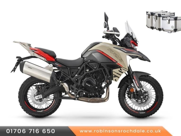 Now available on 0% finance call for details TRK 702X Half price three part luggage.. Choice of colours Low rate HP and PCP full LED headlight unit and a high-resolution 5'' TFT colour display, which has a Bluetooth connection to link to your phone and display incoming calls and notification. The handlebar controls allow also answering or ending a call. Furthermore, by downloading an application to your mobile phone and connecting via wifi, through a phone-mirroring solution it will be possible to transform the dashboard of your bike into a navigator. design of the new TRK 702X, created by the Benelli Style Centre in Pesaro, relies on original distinctive lines, maintaining the family feeling typical of the TRK family..