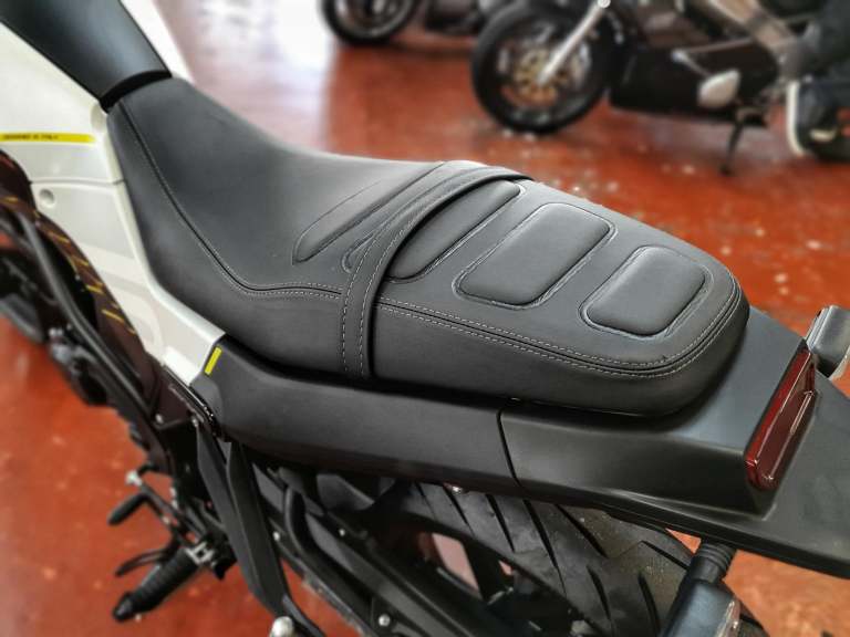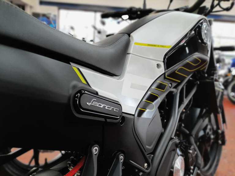 The instrument panel is digital and clearly visible in all conditions. Like the rest of the Leoncino range, the stylised lion proudly stands out on the front mudguard, recalling the history of this model. The suspensions of the Leoncino 125 consist of an upside-down fork on the front with 35 mm diameter legs, while the back end has a swinging arm with a central mono-shock and travel of 53 mm. As for the braking system, there is a single 280 mm diameter floating disc with a three-piston calliper on the back, and a 220 mm diameter disc with a two-piston floating calliper. CBS present. The 17" aluminium alloy rims mount 110/80-R17 and 130/70-R17 tyres, respectively, ensuring maximum road safety.