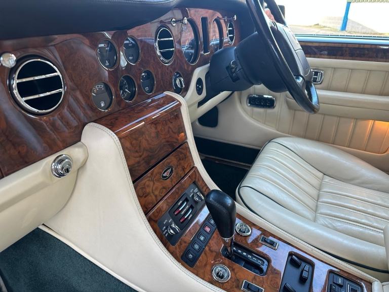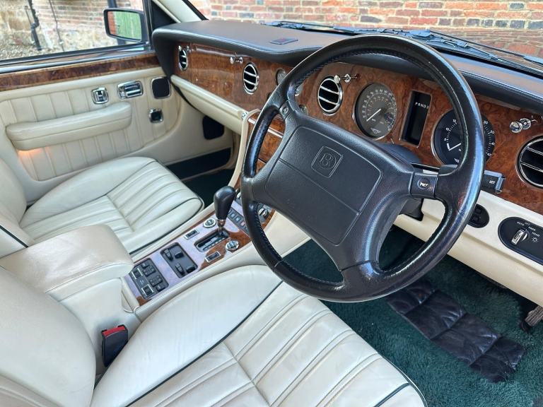 1997 Bentley Brooklands LPT. Black Emerald Metallic with Magnolia leather hide. Last owner for 12 years annd just 82,000 miles. Introduced as a more refined evolution of the traditional Bentley saloon, the Brooklands carried forward the marque’s hallmark combination of restrained British luxury and substantial performance. The Low Pressure Turbo variant represented a particularly desirable specification, offering smooth, effortless power delivery without compromising the car’s notable composure and quietness on the road.
