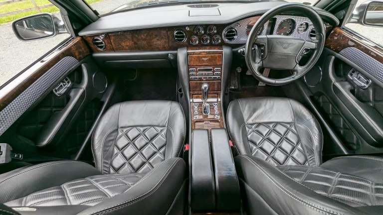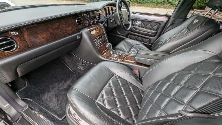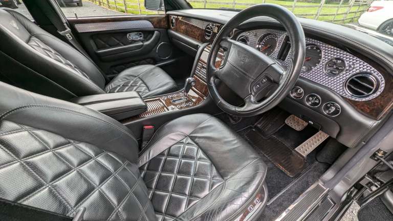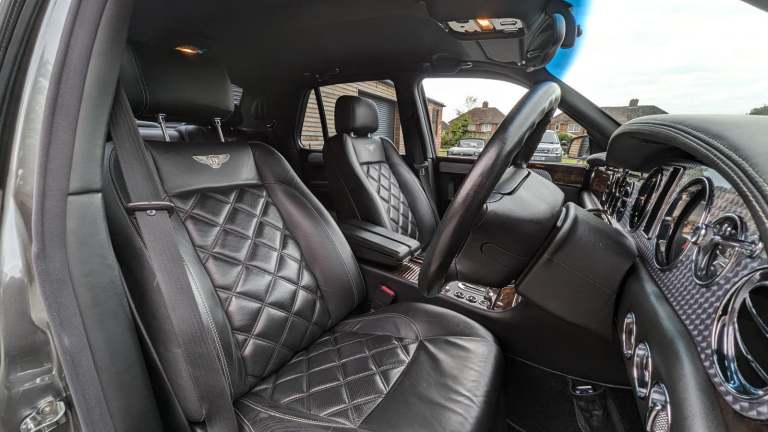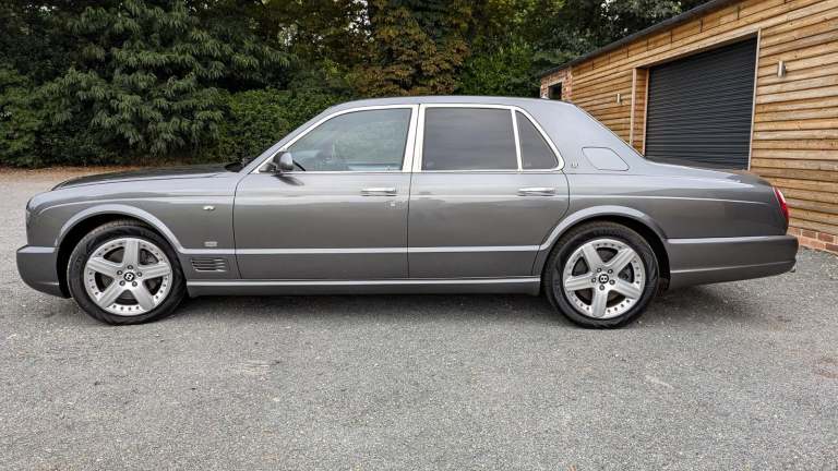 Well I absolutely love this car ,the Arnage T in particular has been something I've wished to come through our hands for for a while, this one has the added bonus of being a Mulliner 2 spec with the Le Mans gills and quad exhaust ,The colour couldn't have been better if I had been well heeled enough to buy it new ,in Tungsten Grey with Beluga hide specified without fine lines ,2 Bentley Brollies are still present