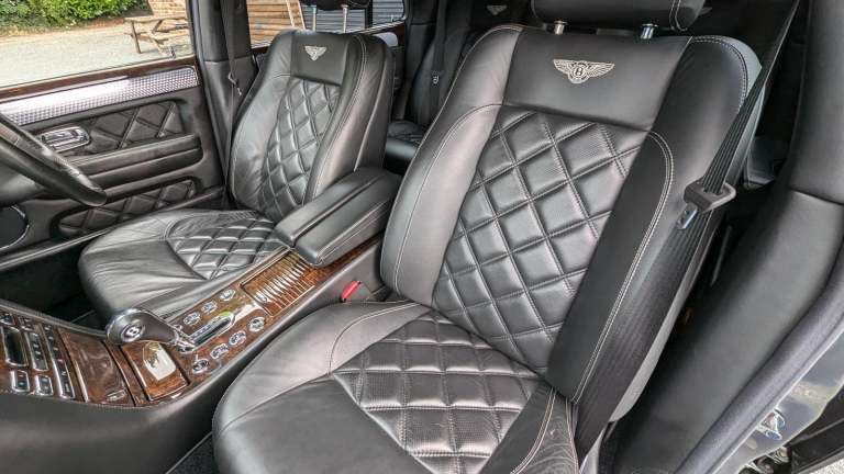 Diamond quilted seat facings with Bentley logo embroidered