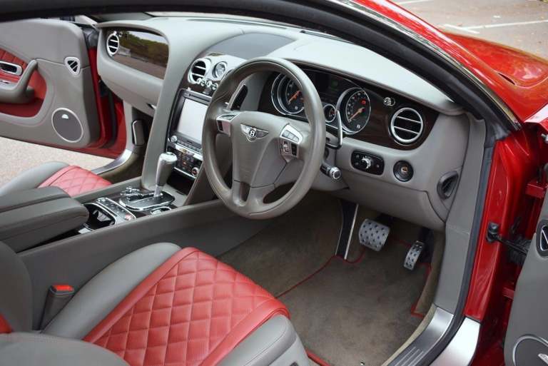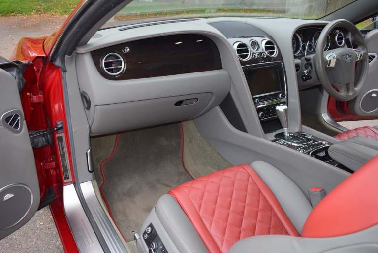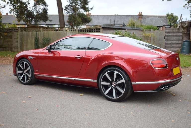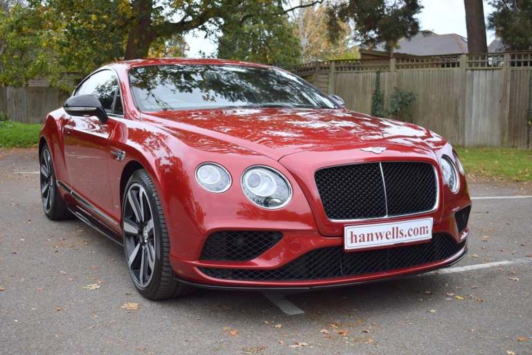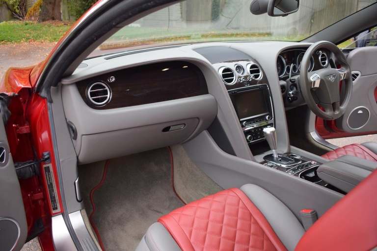 This is one of our 50 Bentleys in stock: 2015/65 (2016 Model) Bentley Continental GT V8 S Mulliner. Finished in special order stunning Candy Red with 21 inch seven spoke polished alloy wheels – Limited Black Edition and Sports exhaust. The interior is trimmed in Fireglow leather with secondary hide in Porpoise, with contrast stitching and Flying B’s stitched in Fireglow. Full Mulliner and Premier specifications. Only 33,000 miles with full history and is immaculate throughout. Must be seen, it’s stunning!Please see our website [Website URL removed] to view our full selection.