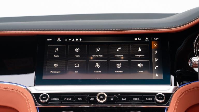 ..[Optional Extra] Touring Specification, [Optional Extra] Heated Duo-Tone 3 Spoke Hide Trimmed Steering Wheel, 4G LTE telephone module,All wheel steering,Apple car play,Blind spot warning,Bluetooth and Wi-Fi audio streaming,Brake pad wear indicator warning light,Collision prevention assist,Cruise control,E-call,Engine start/stop button,Front/rear park distance control,Hands free boot opening,Inductive phone charger,Infotainment system with 12.3 high resolution touch screen retina disp + proximity sensors + advance music interface, single DVD/CD, 2 SD card slots,Navigation system,Online real time traffic information,Park assist system,PAS,POI (search),Power latching to all doors for easy entry,Rear axle steering,Reversing camera,Reversing traffic warning,Top view camera,Traffic sign recognition,Trip computer,3 Chamber air suspension with continuous damping control,Battery charger,Bentley Dynamic ride,Dynamic ride height control + ground clearance function,Electronic limited slip differential,60GB hard drive,Acoustic and heat insulating front windscreen,Acoustic glass,Adaptive brake lights,Auto dimming door mirrors,Auto dimming rear view mirror,Automatic headlights,Bentley lettering on the boot,Black and Chrome bonnet and boot Bentley wing badges,Body colour door mirrors,Bright boot finisher,Bright wing vent with 12 in the black ribbed matrix,Dark tint granite painted radiator matrix,Deployable rear boot spoiler,Electrically adjustable door mirrors with heating,power fold, memory and dip on reverse functions,Full LED Matrix headlamps with high-beam assist,Full LED tail lamps,Heated rear windscreen,Hidden antennae,LED daytime running lights,LED third brake light,Lower front bumper grilles in dark tint (granite painted),Polished bright ware to side windows,Rain sensing windscreen wipers,Rear boot,Speed fascia badge,Speed fender badges,Speed inner treadplates and Bentley illuminated outer treadplates,Speed unique sports sill,12 way heated electric memory front seats,12v power sockets 2 in cabin and 1 in boot,2 cupholders in front centre console,2 individual rear seats,Air Ioniser,Bentley analogue clock with plain bezel,Boot carpet in Beluga,Boot lid down lighters,Deep Pile Carpets to match upholstery,Diamond in Diamond quilting to seats, door casings and rear quarter panels,Dinamica headlining,Electric tilt and reach adjustment steering column with memory and easy entry functions,Footwell illumination and ambient lighting,Four occupant seating