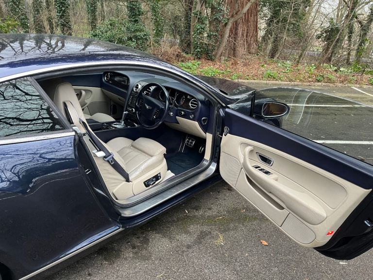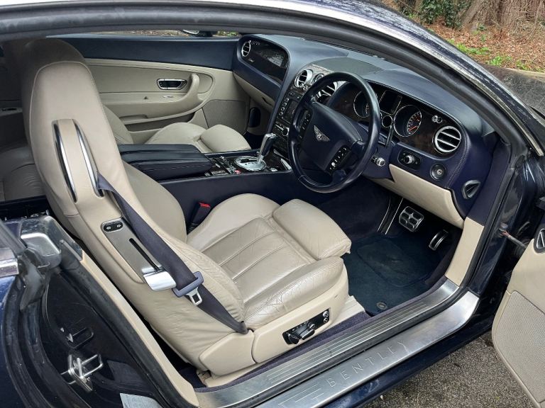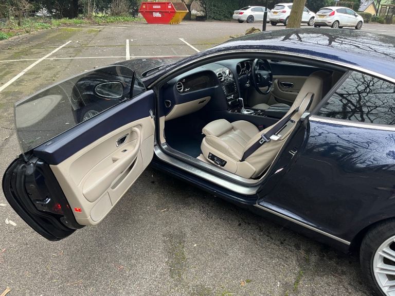 Bentley Continental GT in blue cream interior nice car clean and tidy for year well-maintained selling due to leaving the country so no longer needed MOT to November 26 low mileage for year 84,000 couple of issues with the car driver seat and steering wheel electric doesn’t work airbag light on and rear spoiler does not inject on the electrics should all be simple two keys £1025”