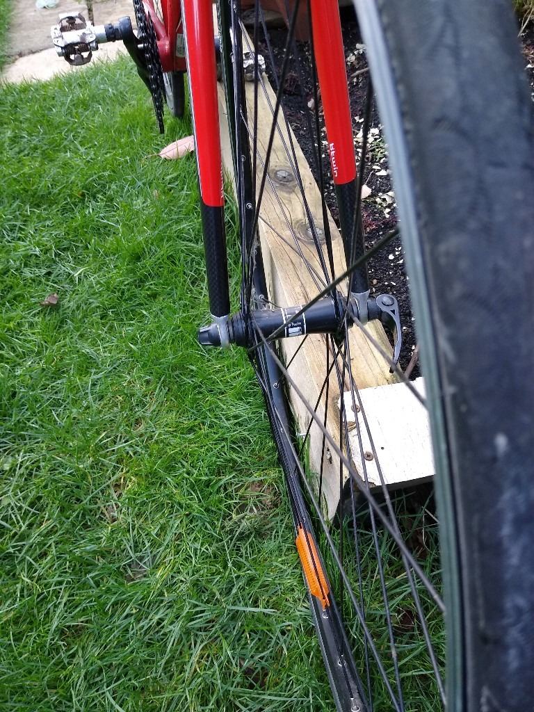 Carbon bladed front forks and immaculate red paintwork.