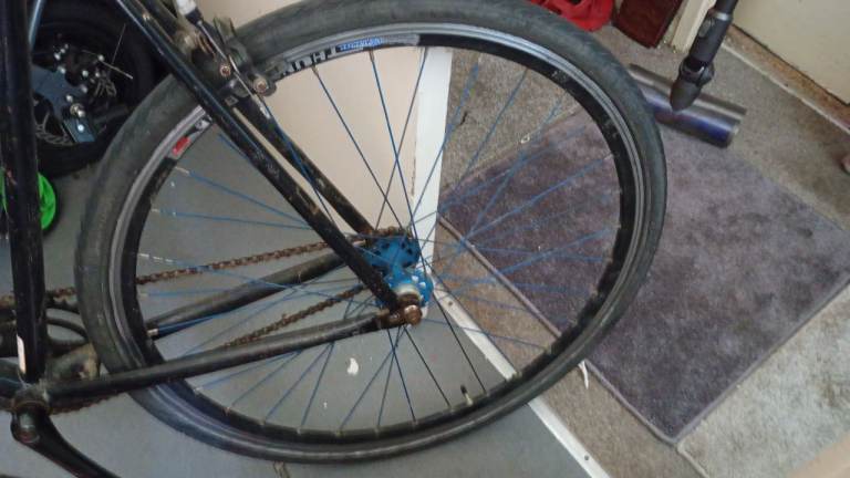 Tyres are solid and ready to ride, a reliable bike for daily commutes.