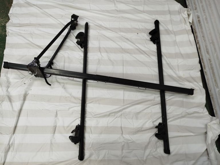 This fold flat cycle carrier fits three bikes with a combined weight of 45 kg. It works with Fiat Doblo type vehicles as well as other hatchbacks. Folded dimensions are W56cm x H100cm x D20cm. It is stable when fitted and comes with a full instruction book. This model is not available on Halfords website any more but a similar rack can be viewed on Halfords website Model 413067