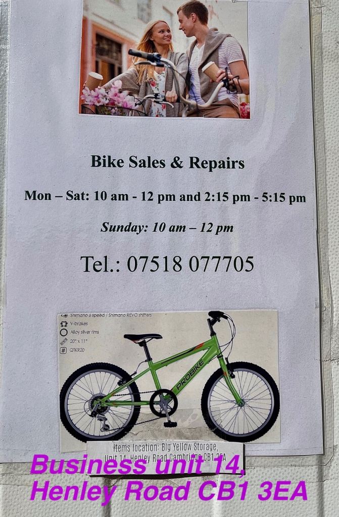 Address: Yellow Storage Unit 14, Henley Road, Cambridge CB1 3EA ( After Royal Mail, Parcel Force Unit)
