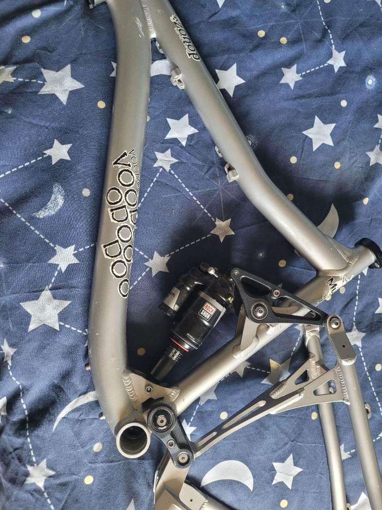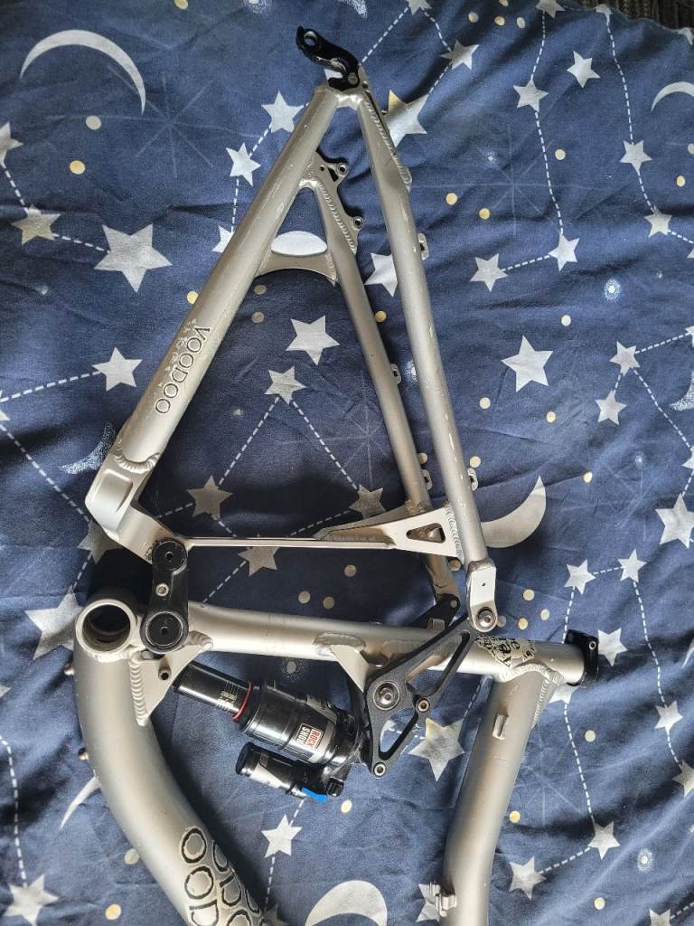 voodoo zobop 26 inch frame, size is a medium, full suspension, comes with rock shox rear suspension and nukeproof headset rare bike frame, collection only from BN1 9GF.