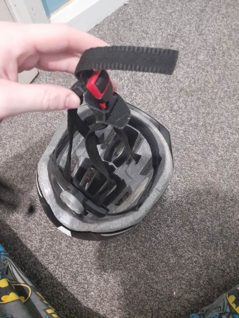 Bike helmet in good condition only problems back light flasher doesn't work needs new battiers that cost 3 pound or less in a shop