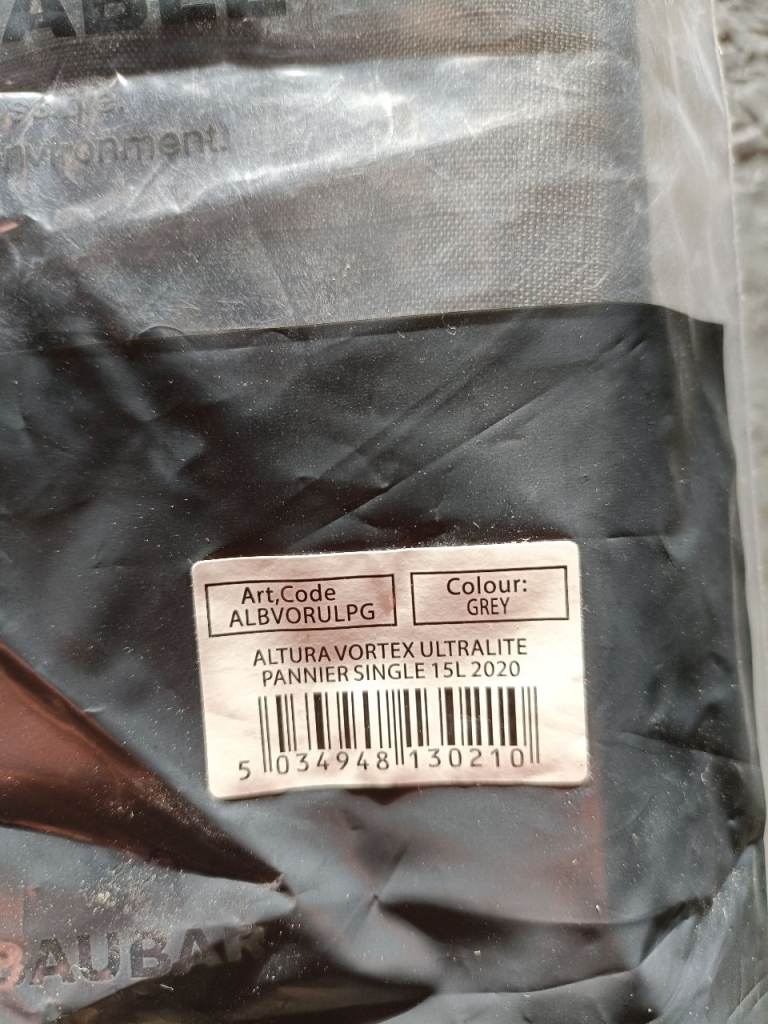 Unused Altura Ultralite Vortex Waterproof Cycling Pannier weighing in at just 260g.