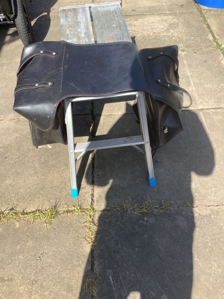 Old British motorcycle panniers , swagman soft luggage