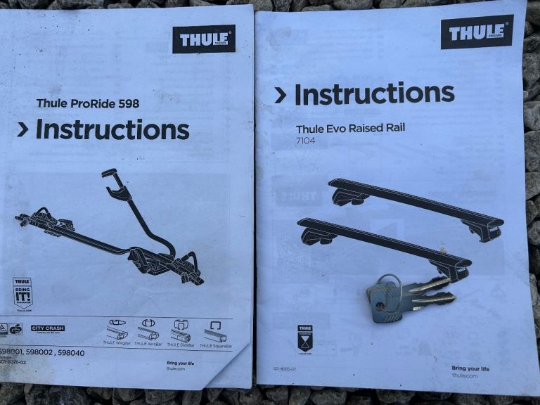 Thule 7104 Evo (low noise one) fits Skoda Kodiac and three Thule pro ride bike holders. All working and have keys. Needs a clean as it’s laying garage for while.