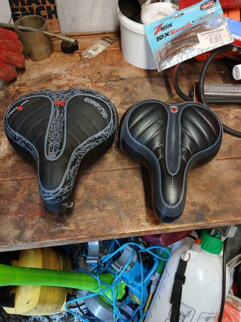 2 good quality bike saddles for £20 , one is a modern carrera memory foam like new condition other is a scor velo good condition