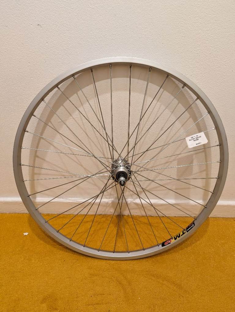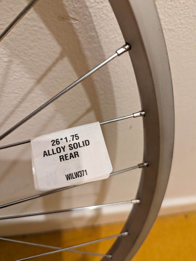Brand new and unused 26" bike wheel. Has a solid axle, and includes the correct nuts. Rim brake only. Compatible with screw on type freewheels.