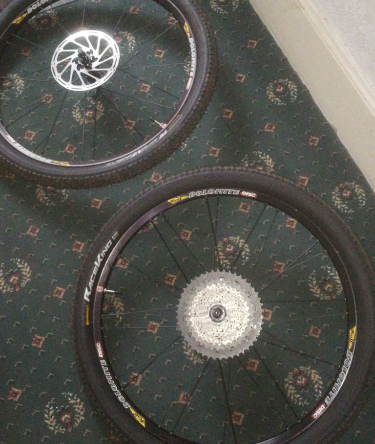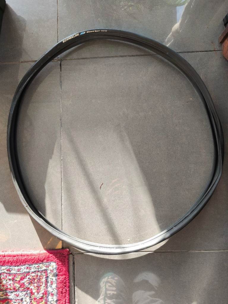 I'm selling a Carrera rear wheel that's grey with disc tyre and tube