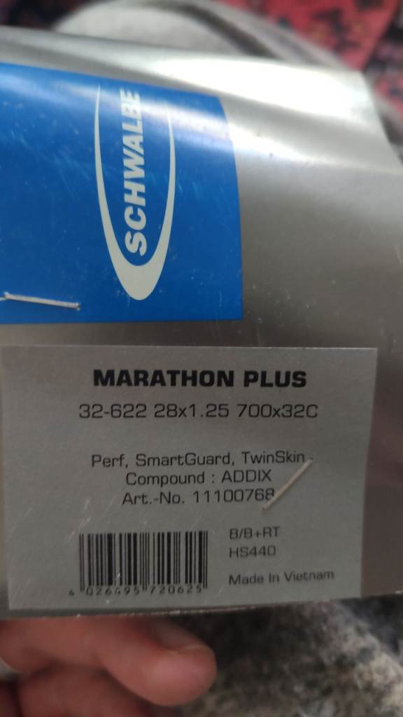 Two brand new Schwalbe Marathon Plus bicycle tyres, never used.