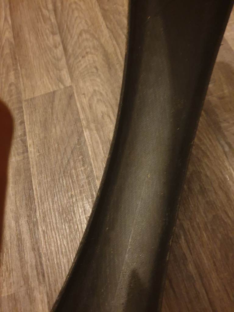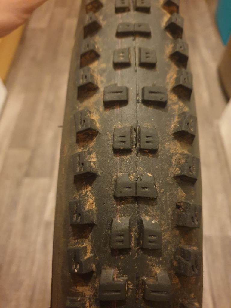 Removed from front wheel, so no flat spots from braking/skidding etc. Work fantastic as rear tyre too.