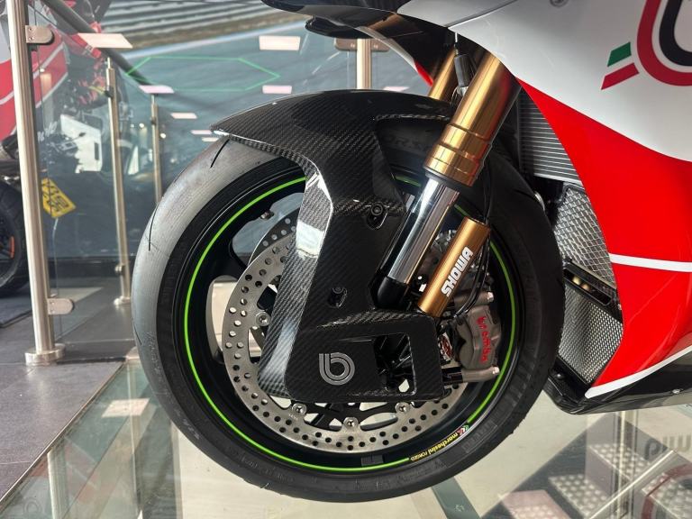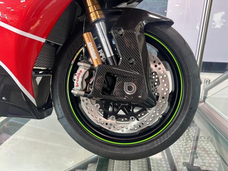 A true piece of Hand Built Italian Exotica and design achievement backed up by the Japanese reliability and together they have forged a 200 horse power track weapon. The akrapovic exhaust already fitted just increases the symphony that this bike produces.