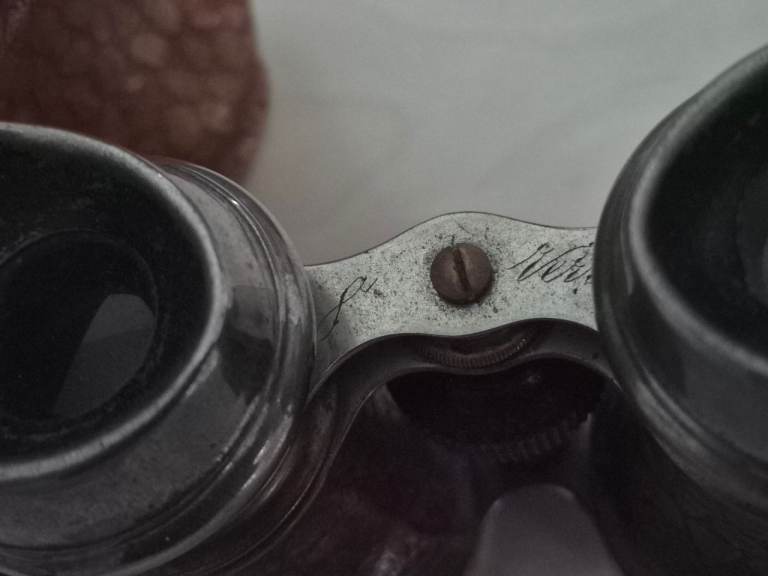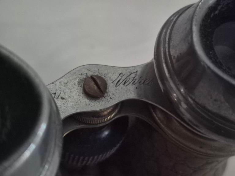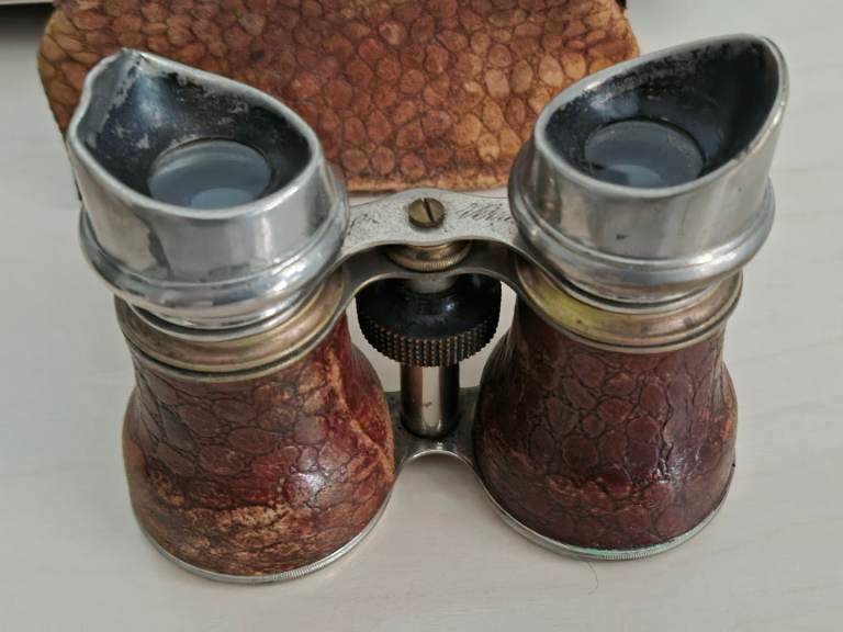 The larger field glasses have a fantastic 'battle-worn' look with a dented eyepiece that gives them real character. The smaller opera glasses are much more delicate and elegant.