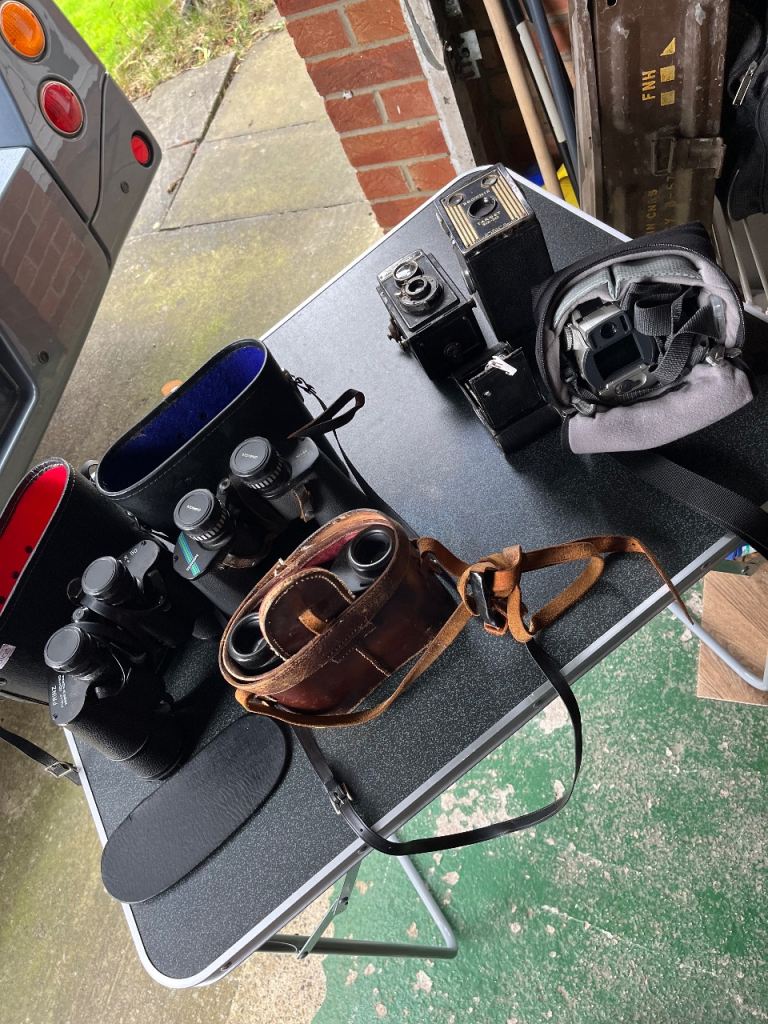 Vintage Job Lot: Brass Opera Glasses & Leather Binoculars.
