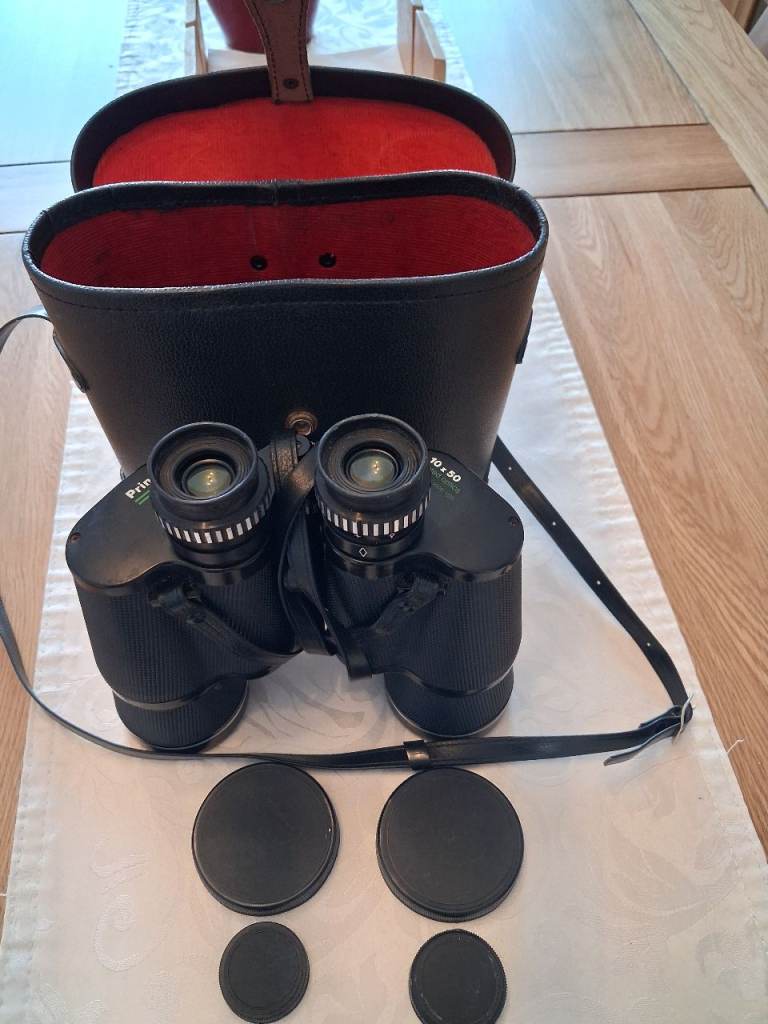 Prinzlux vintage binoculars, 10x50 coated optics, 372ft at 1000yrds with case buyer collects
