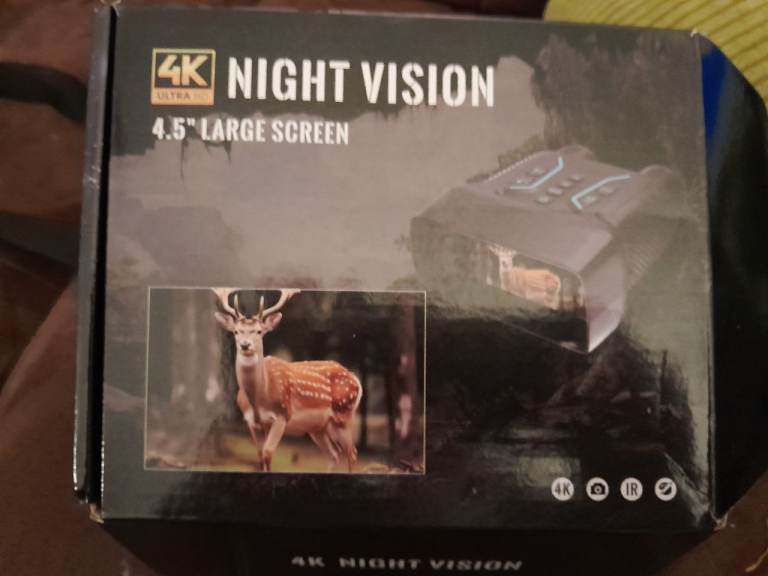 Brand new in the box Night vision binoculars 4K 4.5" screen very good reviews black white or colour comes with SD card for pictures or video recording