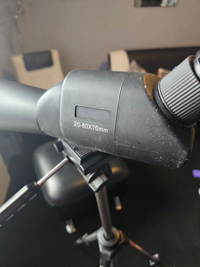 Excellent Condition, Waterproof Rubber Body, Spotting Scope, Very Powerful 20 - 80 Magnification x 70,and Fully Adjustable Tripod.Perfect for Wildlife Watching,Astronomy or Shooting.Boxed with Instruction Leaflet.£75 ono.