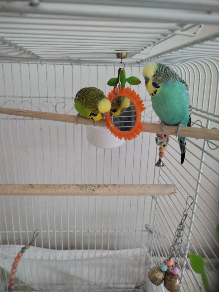 These budgies are trained and they are 1 year old each and they are friendly.[WITH CAGE, TOYS AND FOOD]