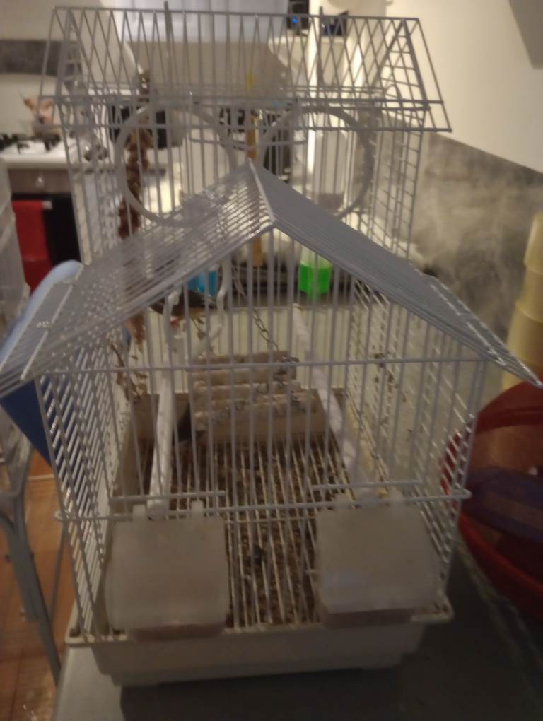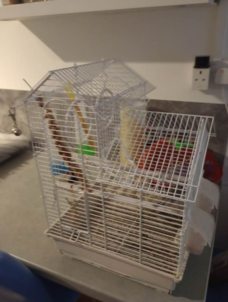 2 zebra finch. Birds. With cage. And. Accessories